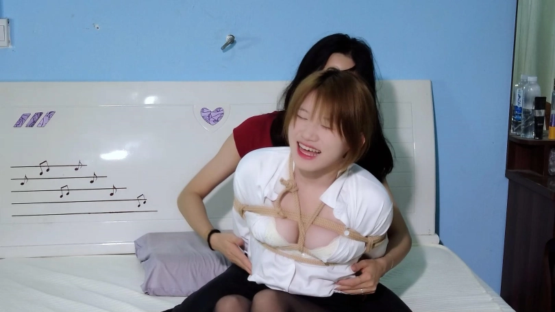 还要被棒棒和跳D上下刺激强震多次羞耻强G!嘴巴被口球紧紧塞着只能发出呜呜的声音口水更是不停的流出!被团缚紧紧捆绑怎么挣扎都无法挣开绳子脱困!