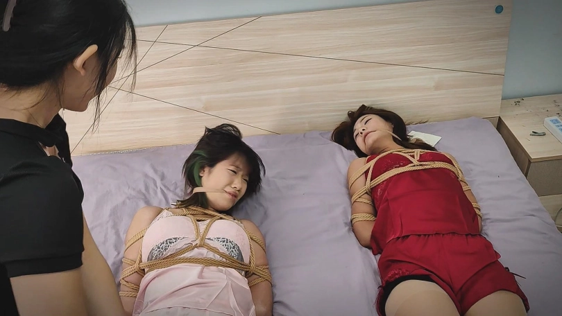 女匪潜入偷东西,趁着女主人熟睡将她捂晕绑起来玩弄,接着女主妹妹也落入魔爪。