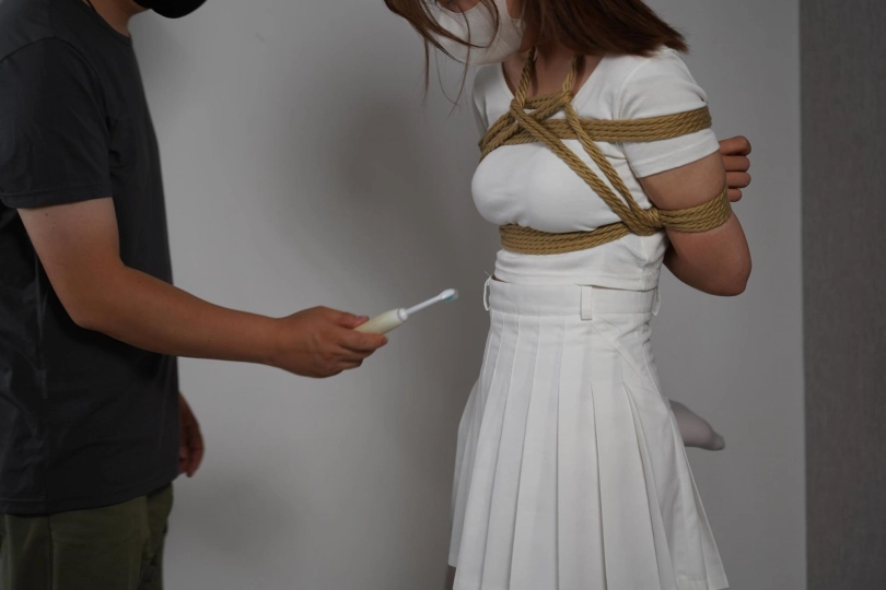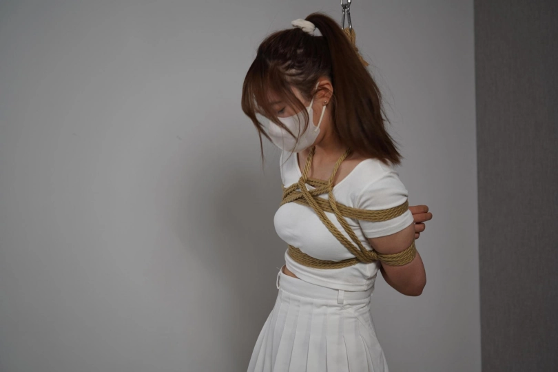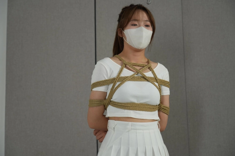清纯女大学生雯雯在网上刷到兼职模特,按照约定的时间到达地点,灰太狼从身后拿绳子将她束缚住,一圈两圈来回缠绕,满脸疑惑的雯雯还没来得及反应,就已经被吊起,单腿吊缚后灰太狼开始挠痒痒,室内全是雯雯“哈哈哈~~啊啊啊”的声音。不够过瘾的灰太狼又将脚铐给她戴着,双腿拉开大字缚,戴上粉色的口球+眼罩,刚戴上雯雯的口水就情不自禁的流了下来,灰太狼又给她用上郊狼,在电击+挠痒痒的双重作用下,口水已经在木板上汇成一大片