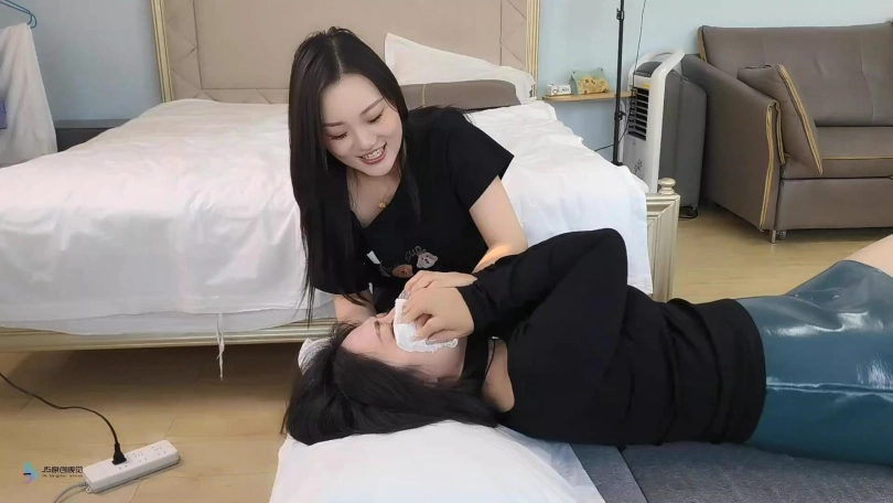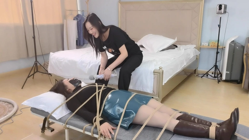 哈妮是一家按摩会所的店长,其实这是一个贩卖美女的中转站。哈妮最近正在发愁找不到合适的货源。这天一个美少妇上门来体验服务。哈妮决定将这名少妇拿下。哈妮让少妇躺在躺椅上,她假装给少妇按摩肩颈,却突然拿着喷着药的毛巾捂住少妇的口鼻。少妇惊慌的挣扎,双足乱蹬,但很快药效发挥,她就安静的睡了过去。哈妮将她绑在躺椅上,嘴巴用超大块胶带封着。醒来的少妇不断的挣扎想挣脱束缚,但哈妮绑的非常的紧,她根本没有机会挣脱。这时哈妮走了过来。