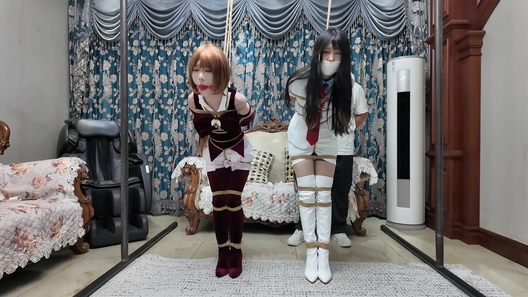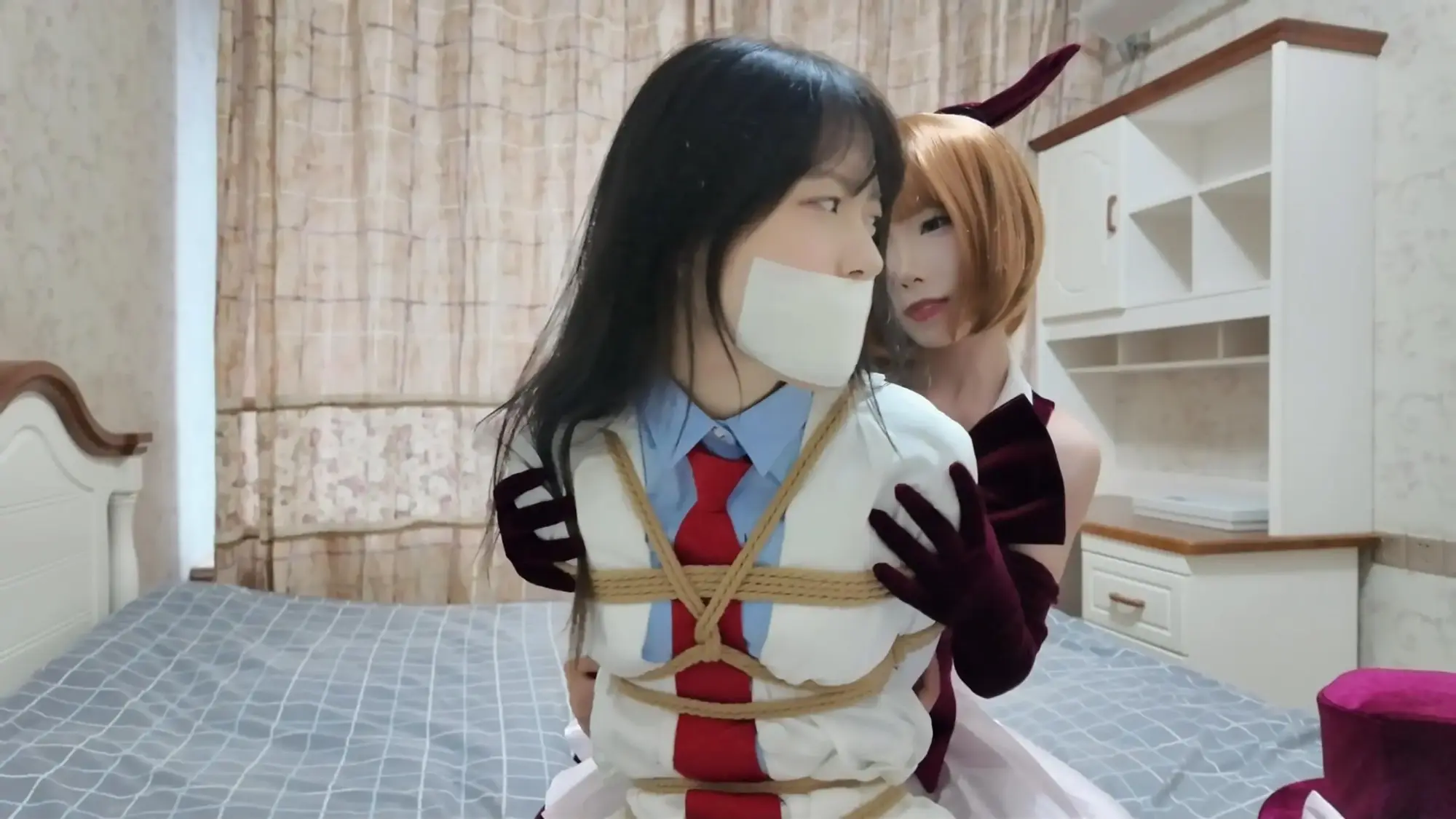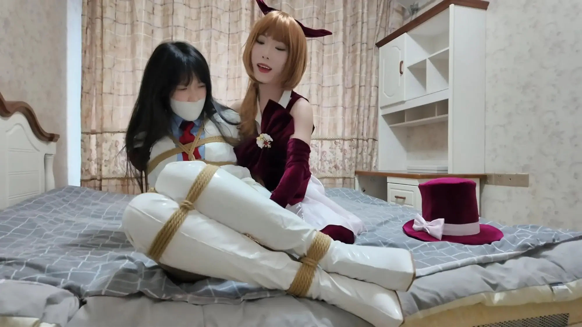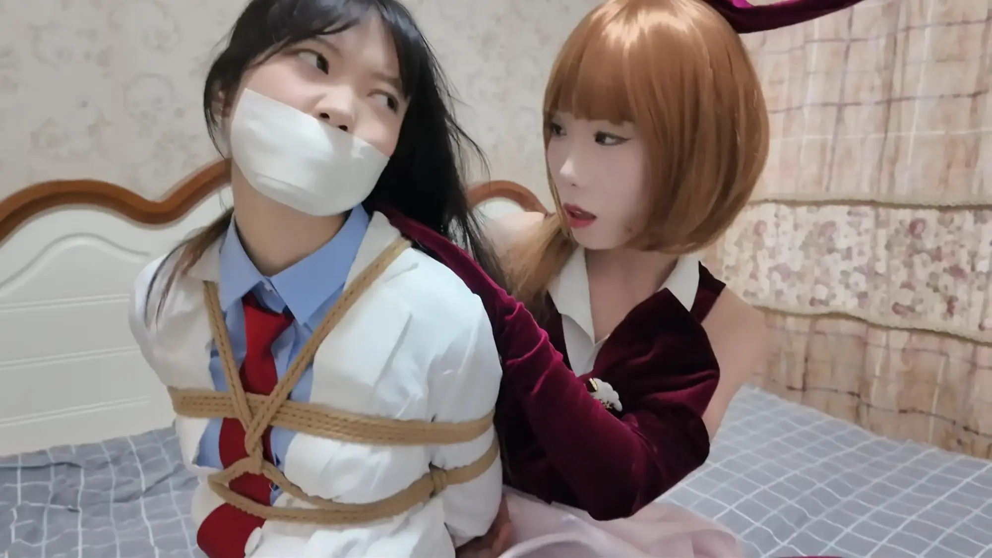 【视频时长】:01:02:37 【文件大小】:3010MB “恭喜你成功通过第一关...” 无比喜悦的你听着系统讲述第二关的规则和给与的辅助, 但是这傲娇的系统又跟第一关一样,一点也不给你面子, 你还没来得及准备,一阵白光之后, 你的眼前已经出现了两道正在紧缚挣扎的曼妙身影, 她们是怪盗姬德和圣少女! 你正想庆祝自己的胜利,好好享受一番, 这时,梦醒了...《缚之旅人》衍生系列《缚神的挑战》第二关终于拍好了!!! 我哭了!确实让大家久等了,圣少女那个衣服等太久了,而且假发还被退回去了一次! 枫叶工作室合作定拍!2.7K画质呈现!60分钟量大管饱版!(在线版画质稍低) 这个系列的内容主要是作为主角的”你“,受到缚神的特别关照,参加她设计的挑战关卡! 每通过一关都可以获得丰厚的收益,但是一旦失败,后果会很严重! 所以请竭尽全力的去通关吧! 本次出场的角色是 圣少女和怪盗姬德,都是动漫中有名的神偷!我找了一圈应该没人拍过!(你说怪盗基德不是男的吗?来缚神的挑战都要变美女!) 饰演她们的两位小姐姐表现的相当好! 互动非常棒,挣扎表情都相当到位! 剧情上我觉得也非常有意思,就没见过这么惨的男主,哈哈哈哈! ![]() ![]() ![]() ![]() ![]() ![]() ![]() ![]() ![]() ![]() ![]() ![]() ![]() ![]() ![]() ![]() ![]() ![]() ![]() ![]() ![]() ![]() ![]() ![]() ![]() ![]() ![]() ![]() ![]() ![]() ![]() ![]() ![]() ![]() ![]() ![]() ![]() ![]() ![]() ![]() ![]() ![]() ![]() ![]() ![]() ![]() ![]()