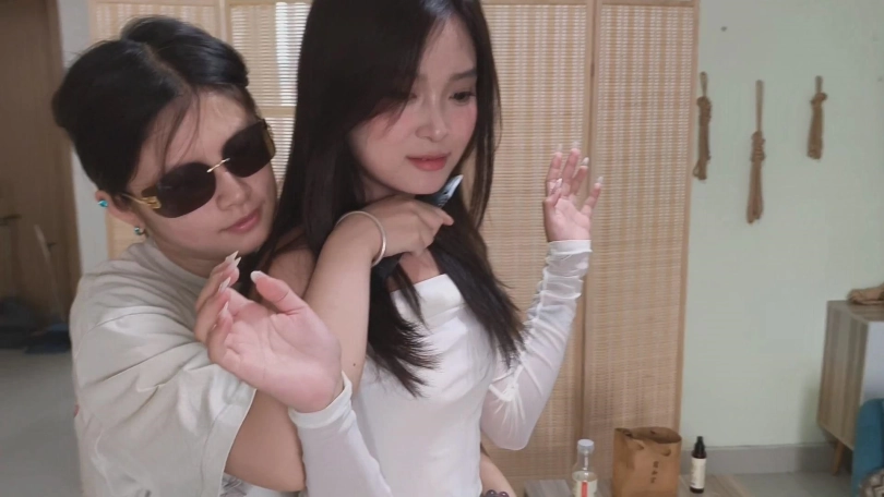 女匪大意被姐妹俩反杀玩弄,不料这时同伙进来,形式顿时逆转,姐妹两个重新绑了起来。