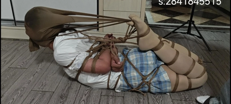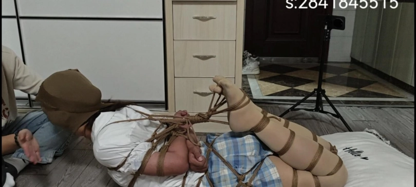 伪娘极限驷马丝袜套头拉紧。脚趾都动不了的极限驷马