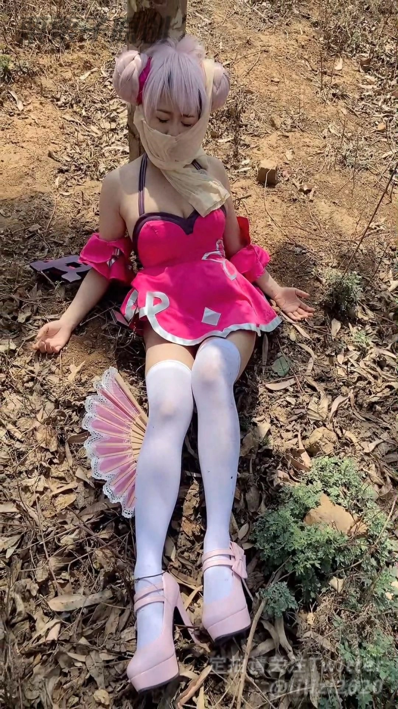 拍摄小乔COS的女COSER,被M晕后用束缚工具将她的捆在郊区的树上,塞上快乐蛋遥控!