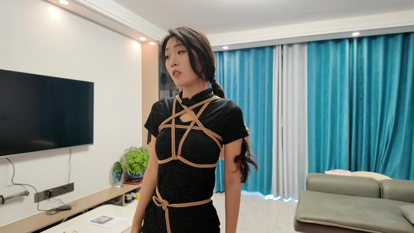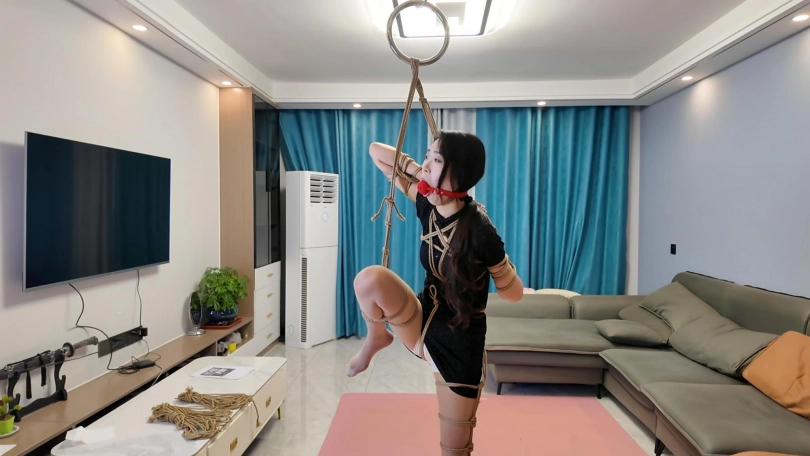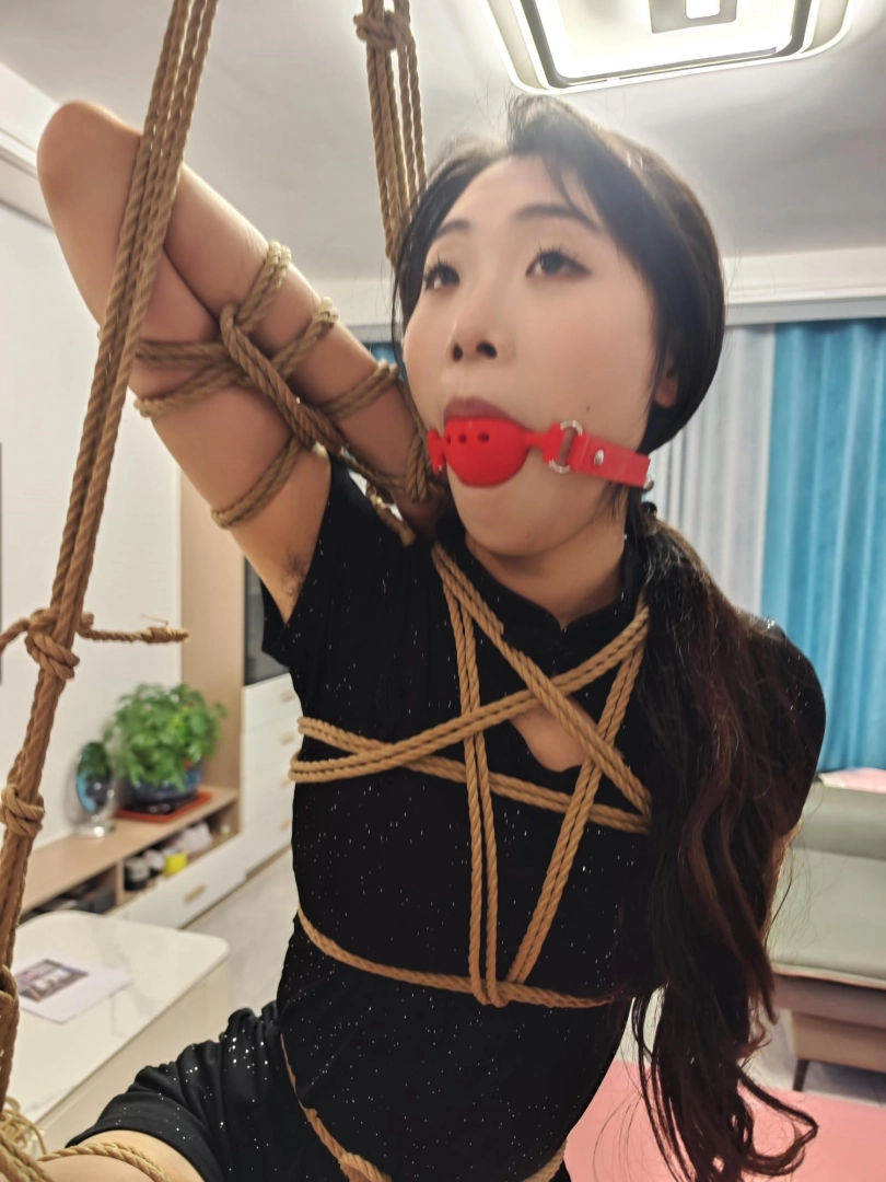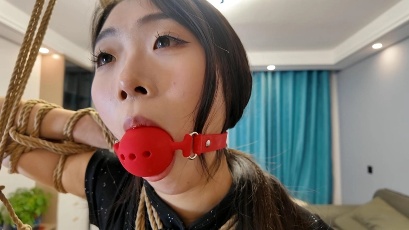 小夏苏秦背剑造型放置,要求带上大号口球,带了半个小时大号口球,把最擅长带口塞的小夏的疼的叫