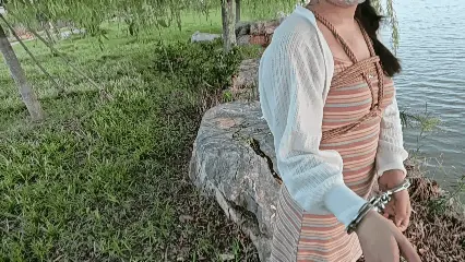 小萝莉苏苏给自己绑了个胸缚,被戴上了手铐和金属脚镣,来到了人最多的步行街道上,和多人打了照面擦肩而过,更是大胆的直接从道路的一头走到另一头,给自己塞上了TD,面对不同人诧异的目光以及玩具的刺激,苏苏有些惊慌失措,后面给她换上了背铐,绳子和脚镣更是一览无遗,行人不时回头观望,有的甚至掏了手机,让苏苏非常的紧张,奈何路人一波接着一波实在太多,去另一边拿钥匙的计划只得搁置一下了,那就束缚者享受一会吧......
