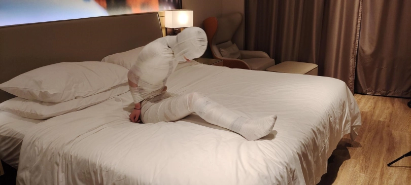 微剧情:一天小Y放学回家后,不知道家里进了小偷,小偷听见开门声立马在洗手间躲起来,等小Y进门后,立马从她身后将她捂晕,然后用胶带将其捆好放在沙发上,小Y醒来后开始挣扎,沿着房间摸索,找到剪刀,开始挣脱束缚,小偷眼见小Y快要逃脱,立马上前再次将其捂晕,并用绷带将小Y全身包裹,小Y挣扎不断,小偷还对小Y进行TK,不知她最后能否逃脱。