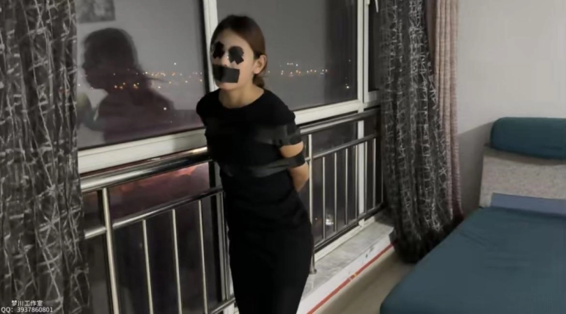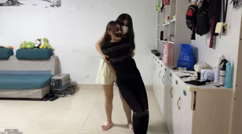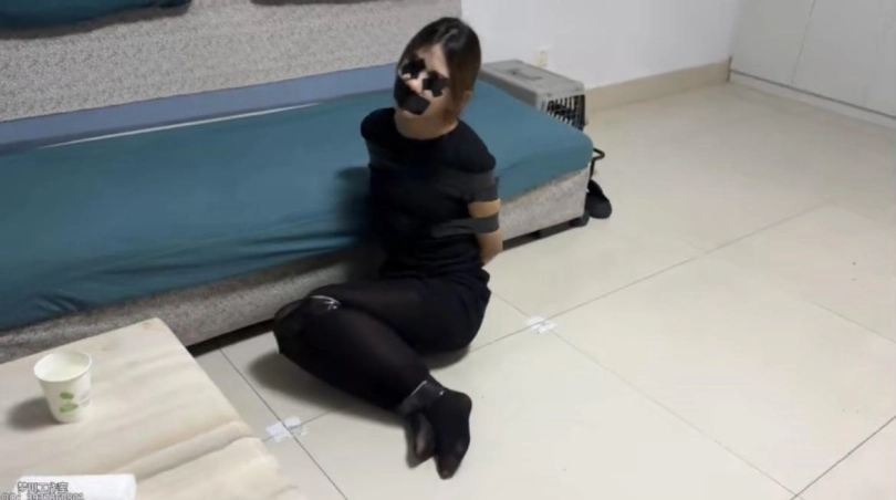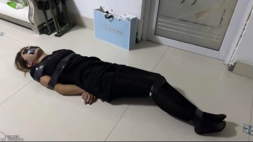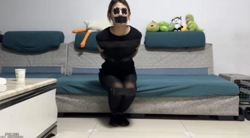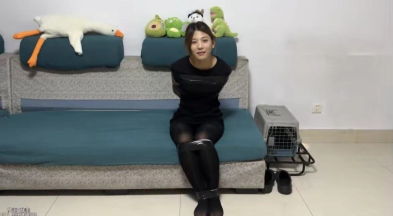 身着黑色连衣裙和厚黑丝的灵儿需要接受一个挑战:首先需要自己把钥匙放到屋里的任意一个位置上,然后灵儿会被黑色胶带蒙眼、封嘴、捆绑。捆绑结束后需要先解脱束缚,并在看不到的情况下寻找自己放置的那个钥匙,找到钥匙即为挑战成功。