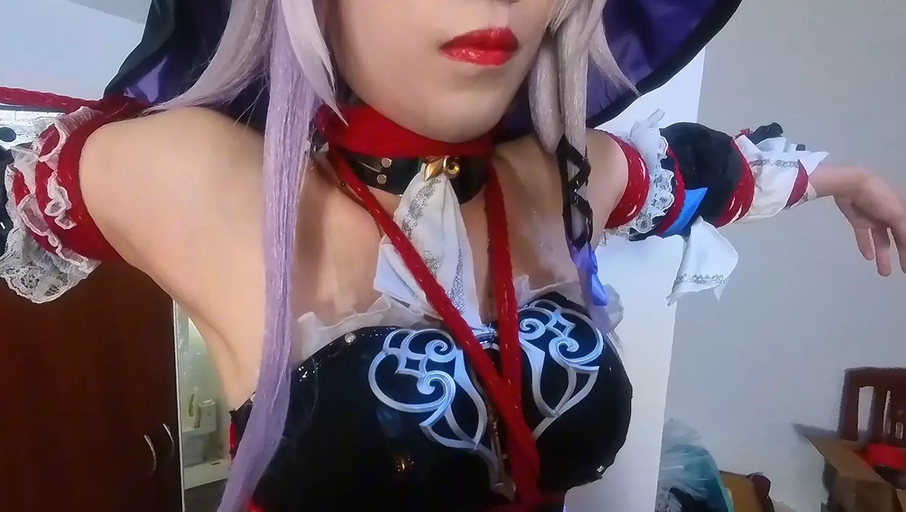 不仅被红绳紧缚在十字架上,腋下暴露出来后还被胶带缠上了按摩器,又疼又痒只能受着这样的酷刑