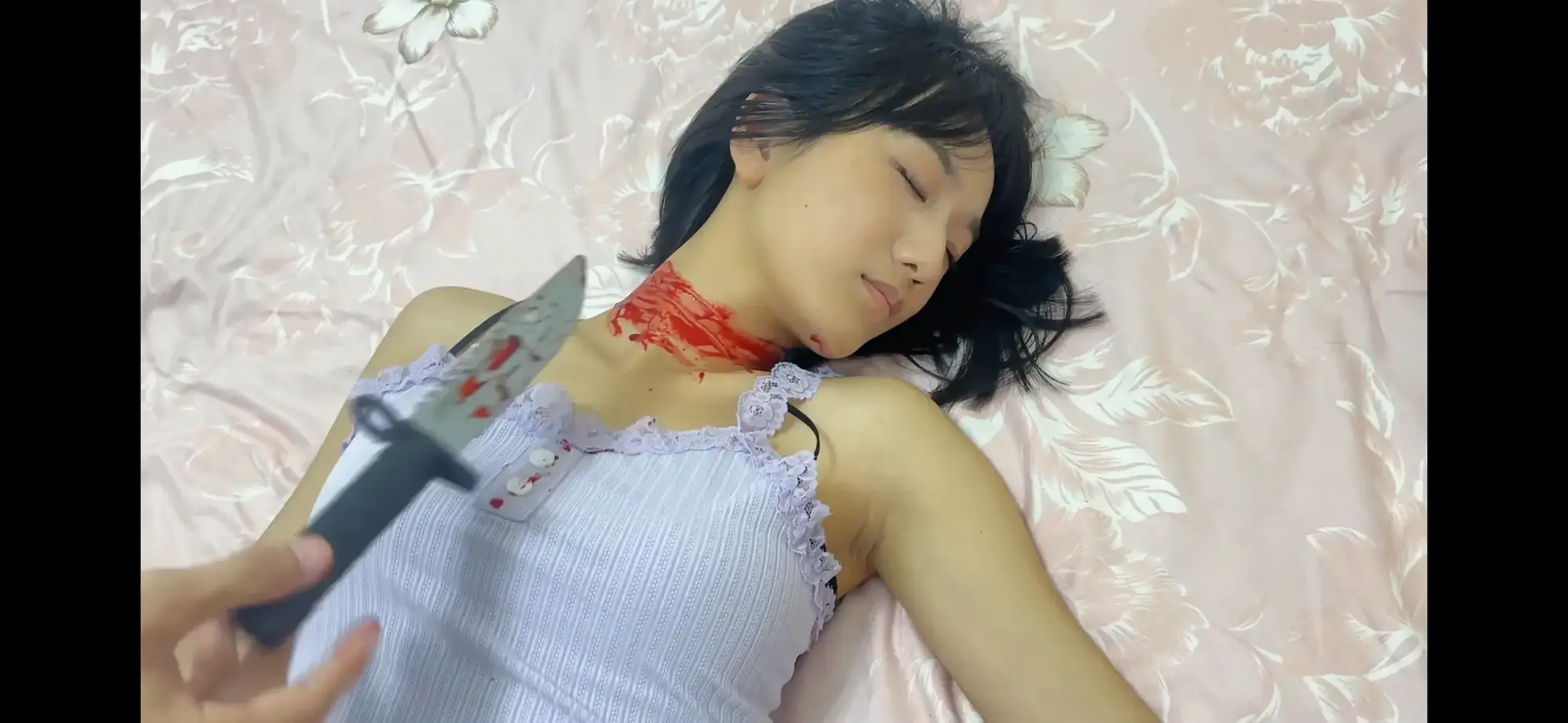 【视频时长】:00:30:04 【文件大小】:2698MB 场景一:刘芳下班回家,在门口附近被尾随,小七捂住她的嘴挟持着她,用细绳子捆住她的手腕在体前,把她扔到床上。这时刘芳说着要报警,把小七激怒。拿起事先准备的黄色胶带一点一点的粘住她的面部(粘到眉毛下方)让刘芳不能呼吸。随着氧气一点一点的耗尽,刘芳挣扎的也越来越厉害,小七按住她的手腕举过头顶,刘芳两腿挣扎渐渐放下,被活活闷死。尸体状态为:刘芳手腕捆绑举过头顶,面部被胶带粘住,两腿呈开腿状耷拉在床下。【5分钟尸体姿势留两分钟】 场景二:小七收到一个刺杀任务[X_X]一个官员情妇刘芳,他伪装成一个修理工,一路尾随刘芳到家门口。看见她进入屋内,借故叫开房门。刘芳领她进入屋内。小七趁刘芳不备从背后捂住她的嘴,劫持她来到卧室,并继续捂住她的嘴把她按在床上,用匕首朝其腹部连刺两刀,又用刀割破她的喉管将刘芳[X_X]。刘芳腹部衣服上有血迹,脖子处有血痕躺在床上,两腿耷拉在床下。【5 分钟,尸体留两分钟】 场景三:前奏:刘芳已经多日没有出门,她的房东前来查看,房东来到卧室发现屋里的画面 1 分钟) 刘芳为一个政府要员的情妇,为逼迫官员离婚,要挟官员。小七接到这位官员的电话收到了刺杀指令。经过几天的观察摸清了刘芳的活动规律。小七竟意外发现刘芳背地里还是一个“小姐”。这可吊起了小七的兴趣。 在刘芳回家的楼道里小七用迷药从背后将刘芳迷晕,然后把刘芳拖进屋内。待刘芳醒来,发现自己手腕被细绳子反绑,自己只能在沙发上挣扎。小七来到刘芳面前,刘芳还想起身挣扎,小七拔出刀让刘芳冷静冷静,刘芳则是一脸不屑又害怕。接着小七就用双手掐住刘芳的脖子没一会儿就把刘芳掐昏过去。待一分钟后刘芳醒来乐趣也没有了之后,小七也不再犹豫,再次来到她面前问其感受如何,刘芳接连求饶向外跑去,小七从后面追上,从背后捂住她的嘴用刀刺入刘芳的腹部,七八刀之后,刘芳被[X_X]。腹部吊带处有血迹。 完事后小七将尸体拖到里屋,把尸体放进衣柜里,就离开了。【场景三前奏开始到此处】 ![]() ![]() ![]() ![]() ![]() ![]() ![]() ![]() ![]() ![]() ![]() ![]() ![]() ![]() ![]() ![]() ![]() ![]() ![]() ![]() ![]() ![]() ![]()