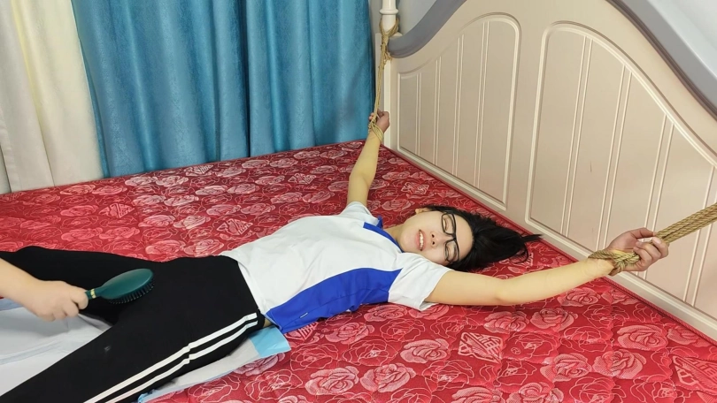 十一被绑到床上,接受TK惩罚,被挠的惨不忍睹,这还不罢休,竟然又被绑到老虎凳上面,把脚刷上油进行刷挠,最厉害的就是撸猫手套,真是效果奇好