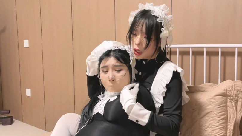 曼妮的身材实在太顶了,女仆装的胸部都塞不下了,性感女仆正在家无聊,黑丝旗袍女贼就潜入进来,女仆把女贼迷倒,将她用黑丝包裹成抱枕,然后慢慢的打扮成性感的丝袜可爱女仆抱枕,供自己肆意玩弄