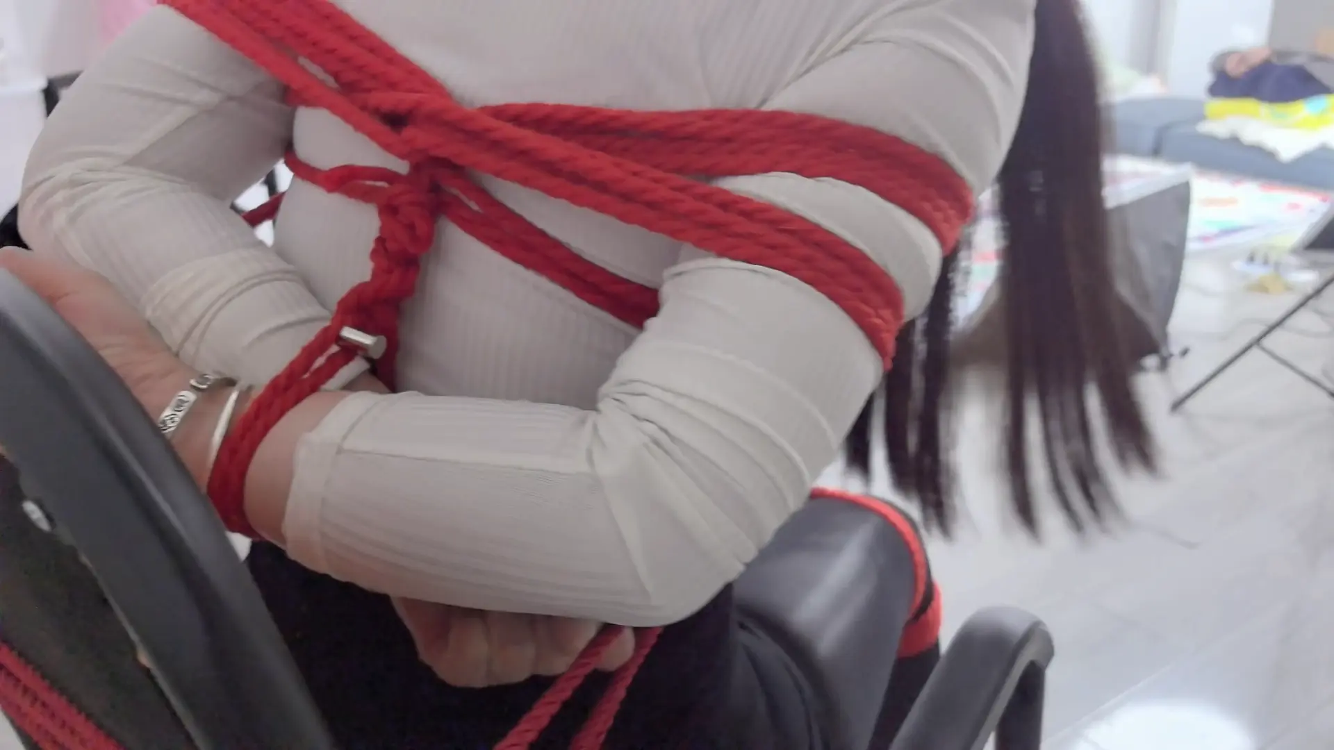 闲来无事的子墨想玩自缚,捆绑好双腿丝并袜勒嘴后,无意中发现一个奇怪的口球。在好奇心驱使下,子墨戴上口球,结果想不到的紧缚诅咒也接踵而至。挣扎无果求救无望的她,也只能接受诅咒带来的命运!
