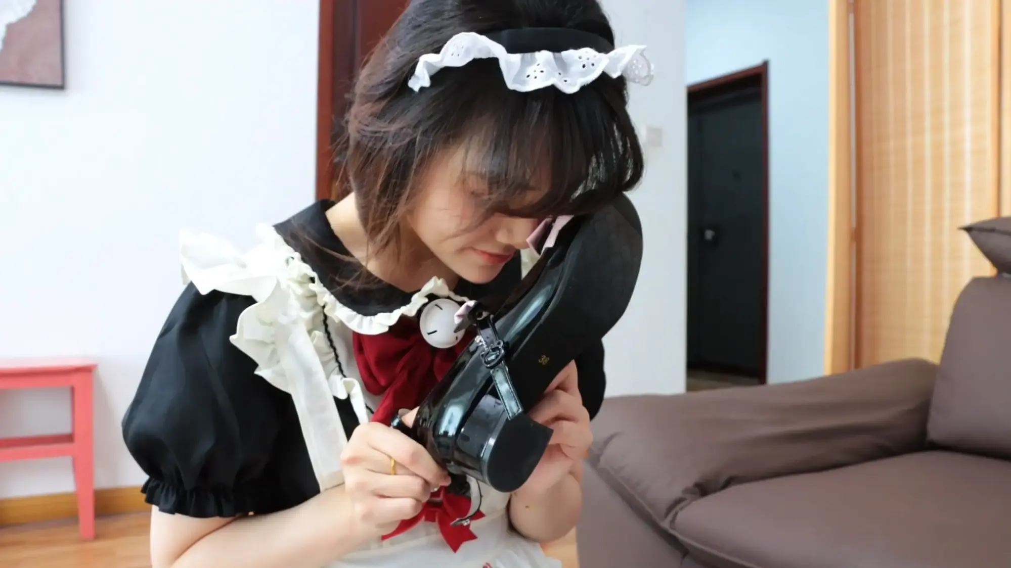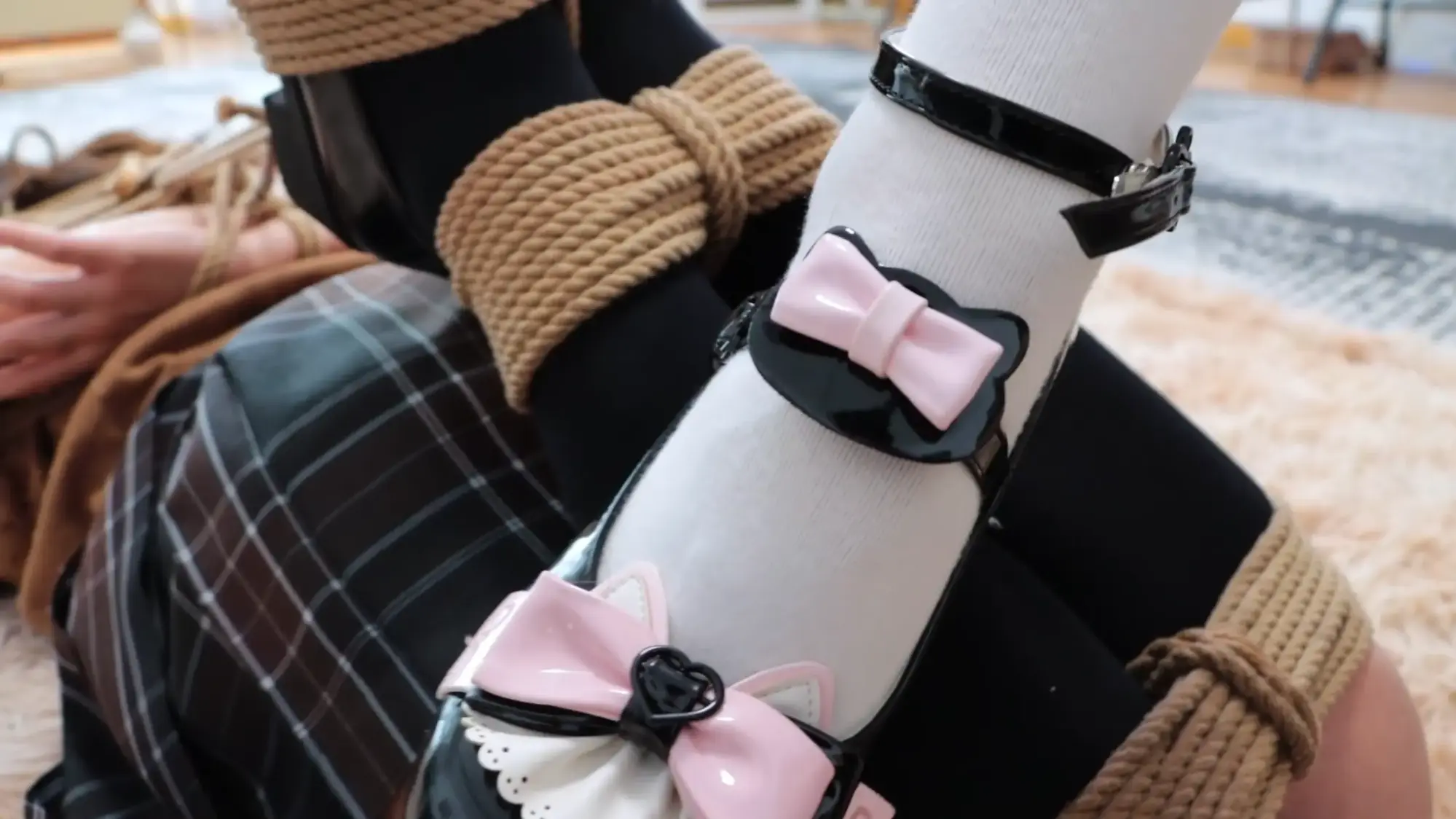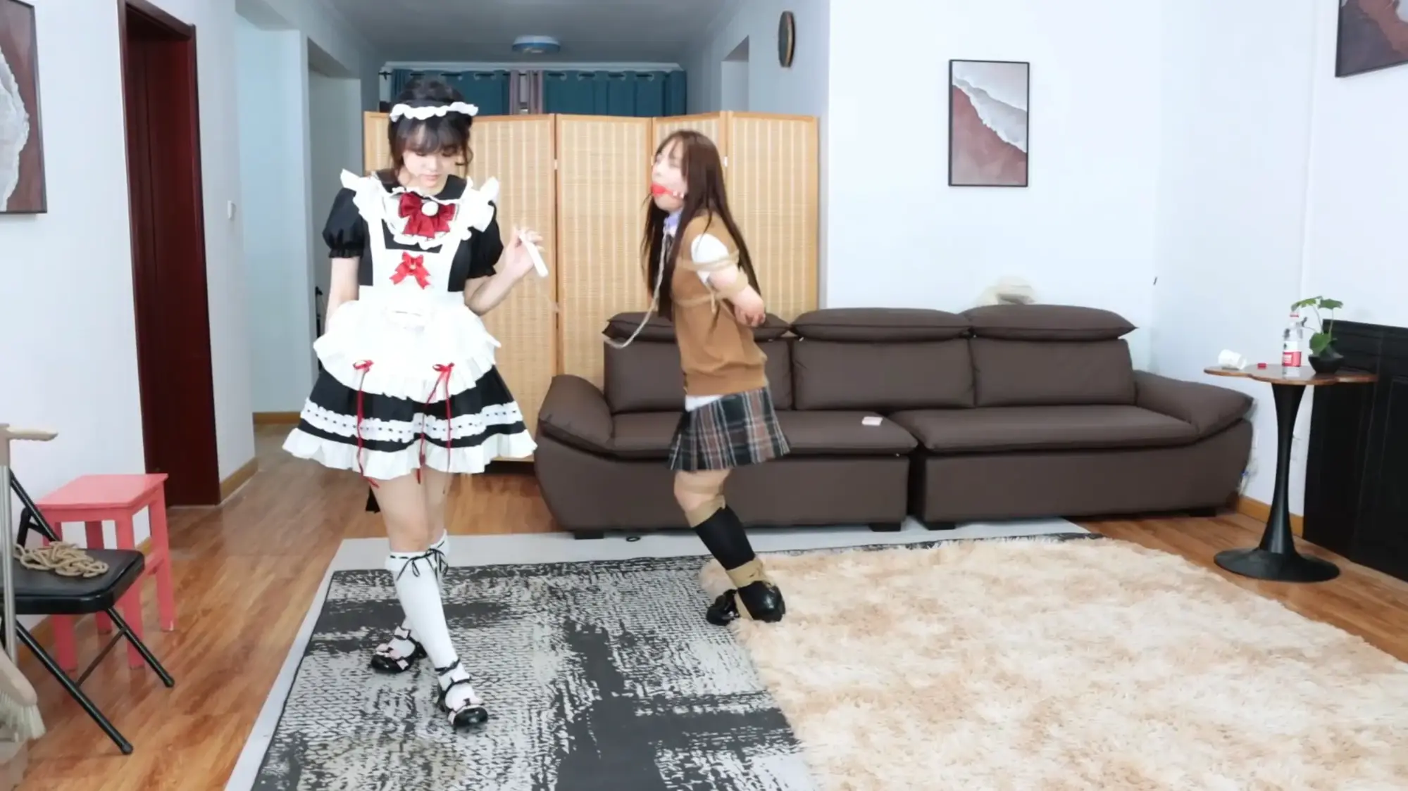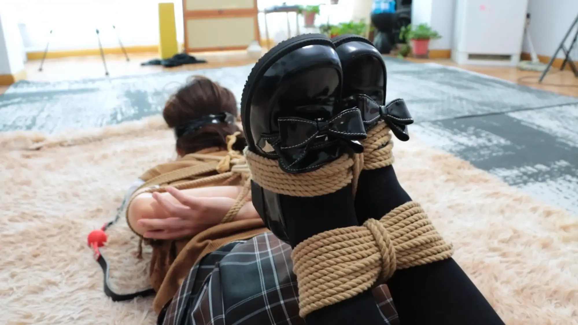 【视频时长】:00:43:59 【文件大小】:734MB 在某地的女仆公会中,梦尘凭借超级可爱的外表,可盐可甜、性格多样,乖巧听话等优势,客户点名次数一度碾压其他所有女仆,成为当之无愧的公会Top1。梦尘的预约安排很满,想约到一次都要排很久的队伍。 绮娜是一名女学生,虽然是女性,但她从小就非常热衷于欺负女仆,每次幻想都让她魂牵梦绕。早在半年前,绮娜便了解到了女仆公会,并在网站上做了梦尘的预约申请。半年间,绮娜省吃俭用攒了很多零花钱,就为了约到梦尘体验一把top1的女仆。 这天,绮娜在房间中看电视等待女仆上门,这时,穿着女仆装、打扮地很精良的梦尘敲了敲门,咚咚咚几声后绮娜为其打开大门,梦尘进门后,摆出女仆的姿势,微笑着说 ——梦尘:"主人,梦尘是您今天下午的专属女仆,有任何需求都可以吩咐梦尘,有想倾诉的事情也可以和梦尘说哦,顾客的满意是梦尘最大的动力。"【梦尘在饰演女仆角色的始终都要面带微笑,无论发生什么都要保持微笑和热情,表现出顶级女仆的素养】 梦尘站在原地等待绮娜的吩咐,绮娜坐回到沙发上,思考了一番, ——绮娜:"什么事情都可以做嘛?" ——梦尘:"可以呀,请主人尽情吩咐梦尘。" 绮娜难以置信,于是随便说了一个胡闹的要求试一试 ——绮娜:"梦尘,把你的鞋子脱下来闻几秒钟再穿上。" 梦尘没有任何犹豫, ——梦尘:"好的主人!" 梦尘立刻脱下自己的鞋子放在脸上闻了起来,几秒钟后再穿回脚上,开心地说到, ——梦尘:"主人,这样子可以嘛?" 绮娜被梦尘的执行力吓了一跳,自言自语, ——绮娜:"不愧是top1的女仆,看样子今天有的玩了。" 绮娜从角落里拿出一捆绳子丢给梦尘,梦尘接过绳子, ——绮娜:"梦尘,给,用这捆绳子把自己的脚捆起来。" ——梦尘:"好的!梦尘这就把自己的双脚用绳子捆起来,限制住自己双脚的自由。" 梦尘坐在地上,用绳子将自己的双脚完全并拢中间不留缝隙,然后捆了单股10-12股并在中间收紧,使得脚腕完全紧贴在一起,前后搓动都很困难【梦尘如果自己绑不紧就切个镜头帮她重新绑紧】。捆绑好之后,梦尘伸出绑好的双脚展示给绮娜看, ——梦尘:"梦尘的双脚已经被紧紧地束缚住了,请主人过目"。 绮娜点点头 ——绮娜:"绑得不错,不过我可没有让你坐下,站起来!"。 梦尘慌张,连忙扶着地板站了起来,仍然以笑相迎, ——梦尘:"对不起,梦尘知错,愿意接受主人惩罚。" ——绮娜:"这还差不多,现在去拿扫把把家里打扫一下吧"。 梦尘一蹦一跳地拿到扫把和簸箕,将整个客厅的纸屑清理干净,然后将扫把簸箕归位摆好后回到客厅中央,面向绮娜, ——梦尘:"主人,梦尘已经按照要求将客厅打扫干净啦,请主人过目"。 绮娜巡视了客厅一圈 ——绮娜:"干的不错。" ——梦尘:"谢谢主人夸奖。" 绮娜见女仆很听话,便抑制不住自己心中的怪癖,坐在沙发上将双脚放在地上 ——绮娜:"梦尘,趴下来,帮我把鞋子舔干净"。 ——梦尘:"梦尘收到!" 梦尘趴在地上用手捧起绮娜穿着鞋子的脚,还没准备舔,就被绮娜一脚踢开, ——绮娜:"谁让你用手碰我的鞋子了?" ——梦尘:"主人对不起,梦尘不该用脏手碰主人的鞋子"。 梦尘重新爬回绮娜脚边,伸出舌头将绮娜的鞋子舔了个遍。【可以切个过场让梦尘漱漱嘴】梦尘舔完后起身站在客厅中间,绮娜看了看自己的鞋子, ——绮娜:"不错嘛,清理的很干净"。 ——梦尘:"谢谢主人夸奖", 绮娜又从角落里找了两捆绳子丢给梦尘, ——绮娜:"把你的小腿捆起来"。 梦尘站在地上,乖乖地将自己的小腿都绑10-12圈并在中间收紧【梦尘如果自己绑不紧就切个镜头帮她重新绑紧】。绑好之后, ——梦尘:"已经按照主人吩咐绑好啦,绑得很紧。" ——绮娜:"不错。" 绮娜站起身将梦尘推倒在沙发上,压住梦尘,掏出绳子将梦尘的上半身绑成日式小高手【装模做样地绑一下,然后切镜头,工作人员给她绑结实了,胸上下各4股绳子,胸前v字,双手吊高一点】。绑好之后,梦尘挣扎着起身并且回到客厅中间, ——梦尘:"梦尘的双手被主人用绳子紧紧地捆住了,现在的梦尘手脚都失去了自由,主人要对梦尘做什么嘛?" 绮娜被梦尘突如其来的挑逗勾引了一下,使坏地说 ——绮娜:"梦尘,我渴了。" ——梦尘:"好的主人,梦尘这就去为主人倒水,请主人稍等片刻"。 说完立马去拿了一个杯子,找来一瓶水,拧开瓶盖往杯子里倒水,倒好水之后用绑在背后的手将杯子拿给绮娜, ——梦尘:"主人请喝。" 绮娜接过水杯,喝掉一大半水,将剩下的一点水撒在客厅地板上, ——绮娜:"哎呀,不小心弄撒了,梦尘打扫一下。" ——梦尘:"好的,梦尘这就去"。 梦尘去拿一个拖把,将地板拖干净,然后放回拖把回到客厅中间站着, ——梦尘:"主人,地板已经打扫完了"。 ——绮娜:"挺能干的嘛"。 ——梦尘:"梦尘是主人的女仆,这些都是应该的", 绮娜坐在沙发上,翘起二郎腿,吩咐到 ——绮娜:"梦尘,给我表演几个节目"。 ——梦尘:"好的主人"。 梦尘思考了一会儿, ——梦尘:"主人,梦尘接下来表演的是被绑架之后的逃脱过程"。 说完,梦尘在客厅里跳来跳去,查看每个房间的门能不能打开,跳了一会儿之后一个没站稳,梦尘摔倒在地上,在地上扭动了一会儿之后,梦尘爬到沙发边,倚靠着沙发重新站起来,跳到大门边,最后回到客厅中间, ——梦尘:"主人,梦尘如果被绑架了,就会按照刚才的方法尝试逃脱哦,主人觉得表演的如何呢。" ——绮娜:"感觉……有点太简单了