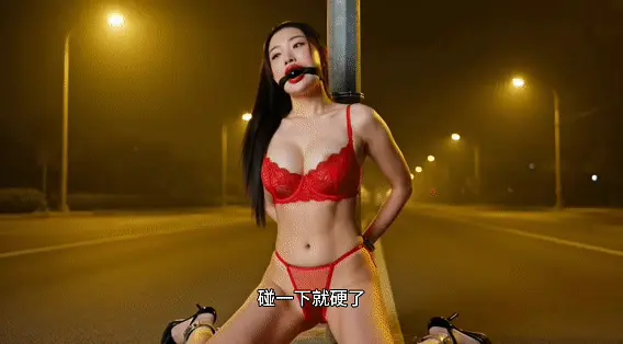 夜间无人的大马路公开遛狗,路灯下被绑在电线杆跪姿展示
