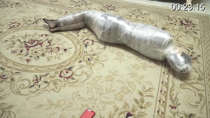 杜洋被小偷制服,完全无法逃脱。小偷却与她约定玩逃脱游戏,如果能在他回来前找到放在客厅的剪刀,并用它解开绳索就放她一命。心急如焚的杜洋拼尽全力挣扎,却因为被蒙住眼不小心将剪刀踢进沙发底下,逃脱失败的她遭到了保鲜膜全包的惩罚......
