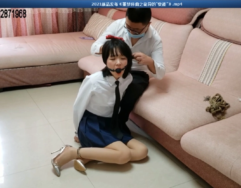 一个周末的午后,大三学生莹莹在家悠闲的做着直播,忽然门铃响了,莹莹开门原来是她的快递到了,她高兴的签收,谁知她的恶魔序曲开始了....莹莹急忙打开纸箱,里面的东西莹莹都没见过,只认识一捆绳子还有一些金属物品加上一个小黑球,正当莹莹诧异万分想要给快递员打电话问清楚的时候,她的微信响了,里面传来了一个恶魔的声音“莹莹小姐请不要诧异,你的快递是我送给你的礼物,我已经盯你很久了,明天这个时间我还会来你家,陪你玩玩这些你不认识你的好东西...哈哈哈...我劝你不要企图报警,不然你全家人都有危险,我说到做到!!”害怕万分的莹莹不知所措,这天她一夜未眠,耳边都是那个恶魔的声音....第二天中午同样时间,莹莹家的门铃准时响了,莹莹呆呆的去开门,她知道自己在劫难逃了....接下来就是恶魔用快递箱子里面的全部物品,狠狠的玩弄这个无辜的少女,把她吊绑起来再用镣铐锁紧,两脚悬空狠狠猥亵狠狠鞭打,那个小黑球当然也不会闲着,莹莹的小嘴被塞得满满的,口水横流,被折磨的精疲力尽的莹莹最后被这个禽兽xx以后又打了一针,不久莹莹便昏了过去,恶魔拿出自己带来的布口袋,把她捆好装了进去,继续寻找他的另外一个猎物,继续送着他的“诡异快递”.....