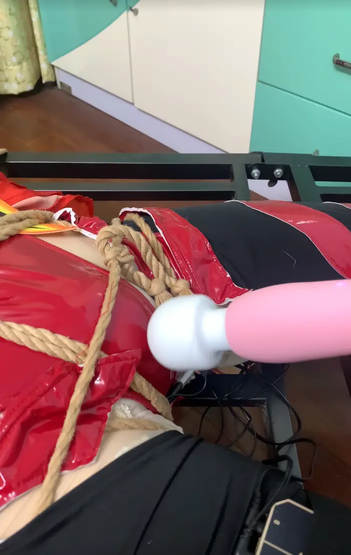 小南梁被绑在钢架床上动弹不得,连手指脚趾都被紧紧绑起来 一边忍受郊狼的电击一边忍受脚底被挠痒,还要被震动棒冲击下体