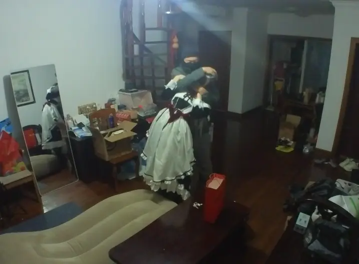 累了一天的女仆终于下班回到家中了,但此时她还没有发现家中已经进入了劫匪,正在她好不容易想要放松一下的时候劫匪从背后袭击了她