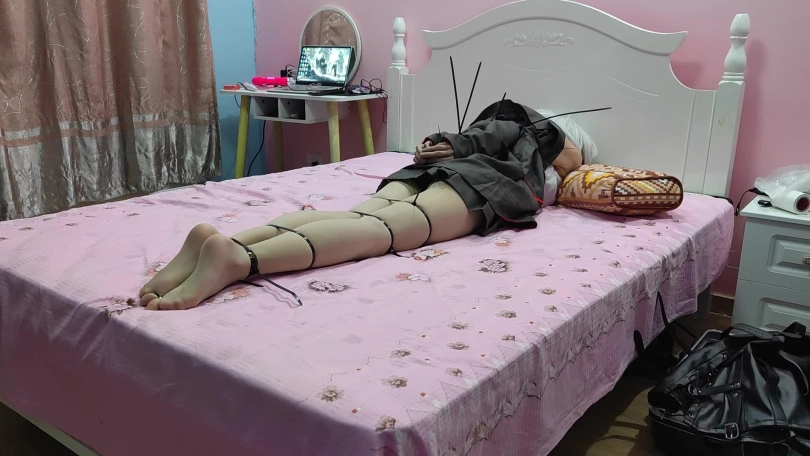 战败被抓住,并且用扎带捆住全身,深深地陷进了肉里,稍稍一活动就会全身生疼,只能乖乖地被挠痒痒