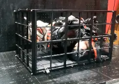 男娘w被抓起来关进笼子,下面也被负数锁紧紧锁起来,然后拘束在柜子里用飞机杯榨精