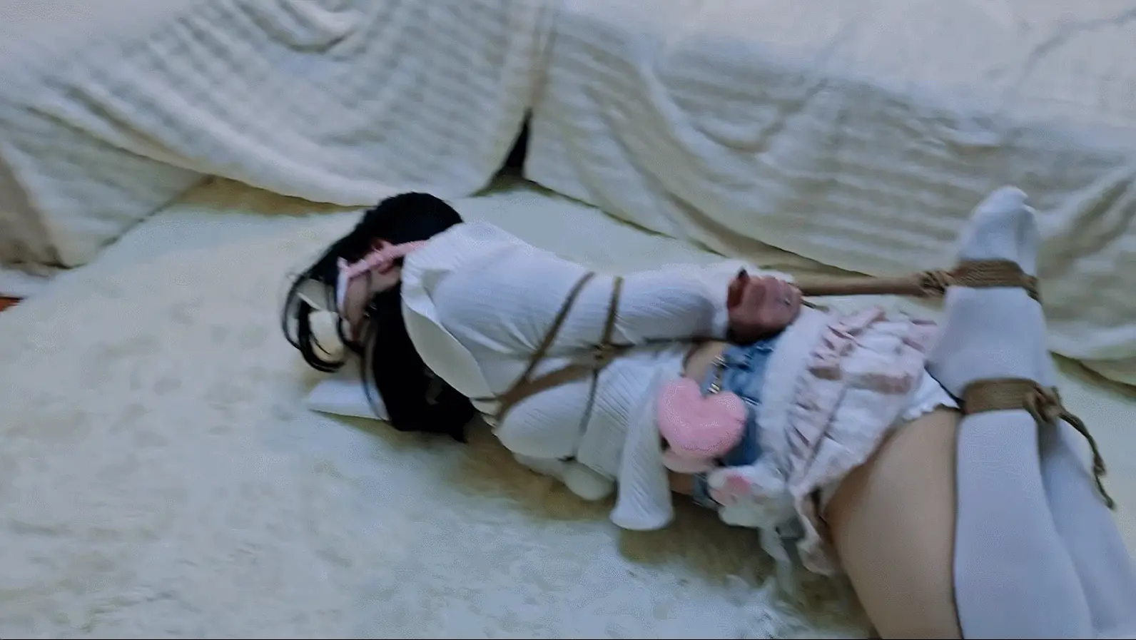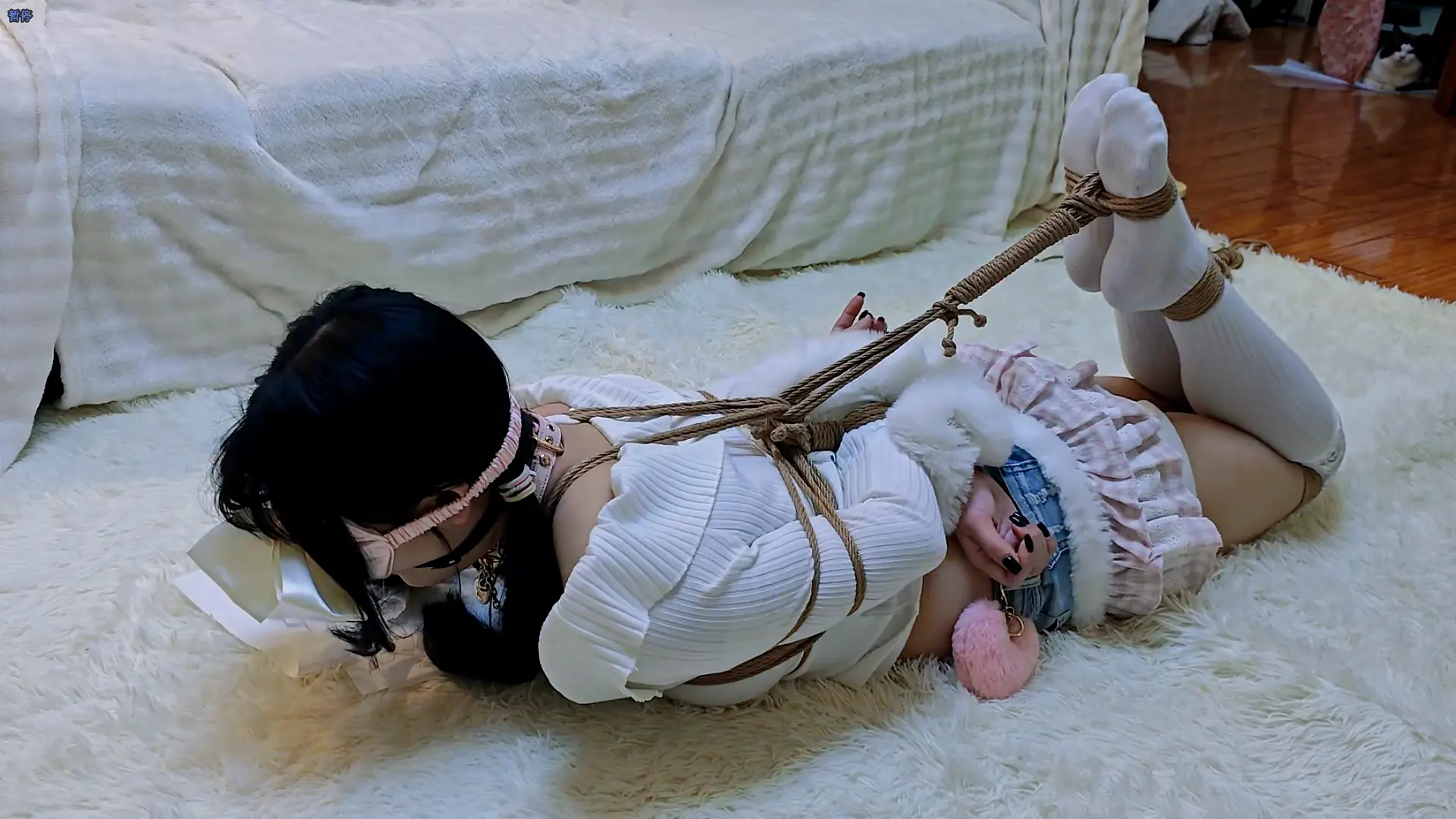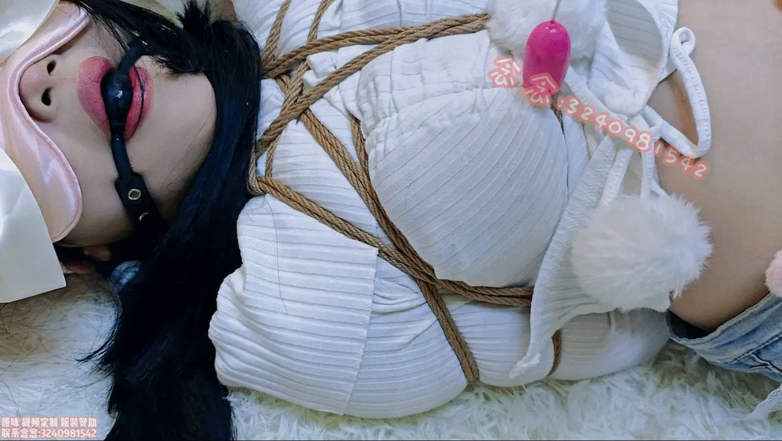带了眼罩和口球,因为被蒙着眼的原因所以不知道口水都流到了哪里,全程都很担心又很羞耻..td也是依旧很折磨,位置时对时不对,每次想调整的时候身体又会被绳子牵引的很疼,而且这次绑的格外认真所以感觉全身的绳结都很紧,虽然是很久违的驷马但还是会有些难以忍受00