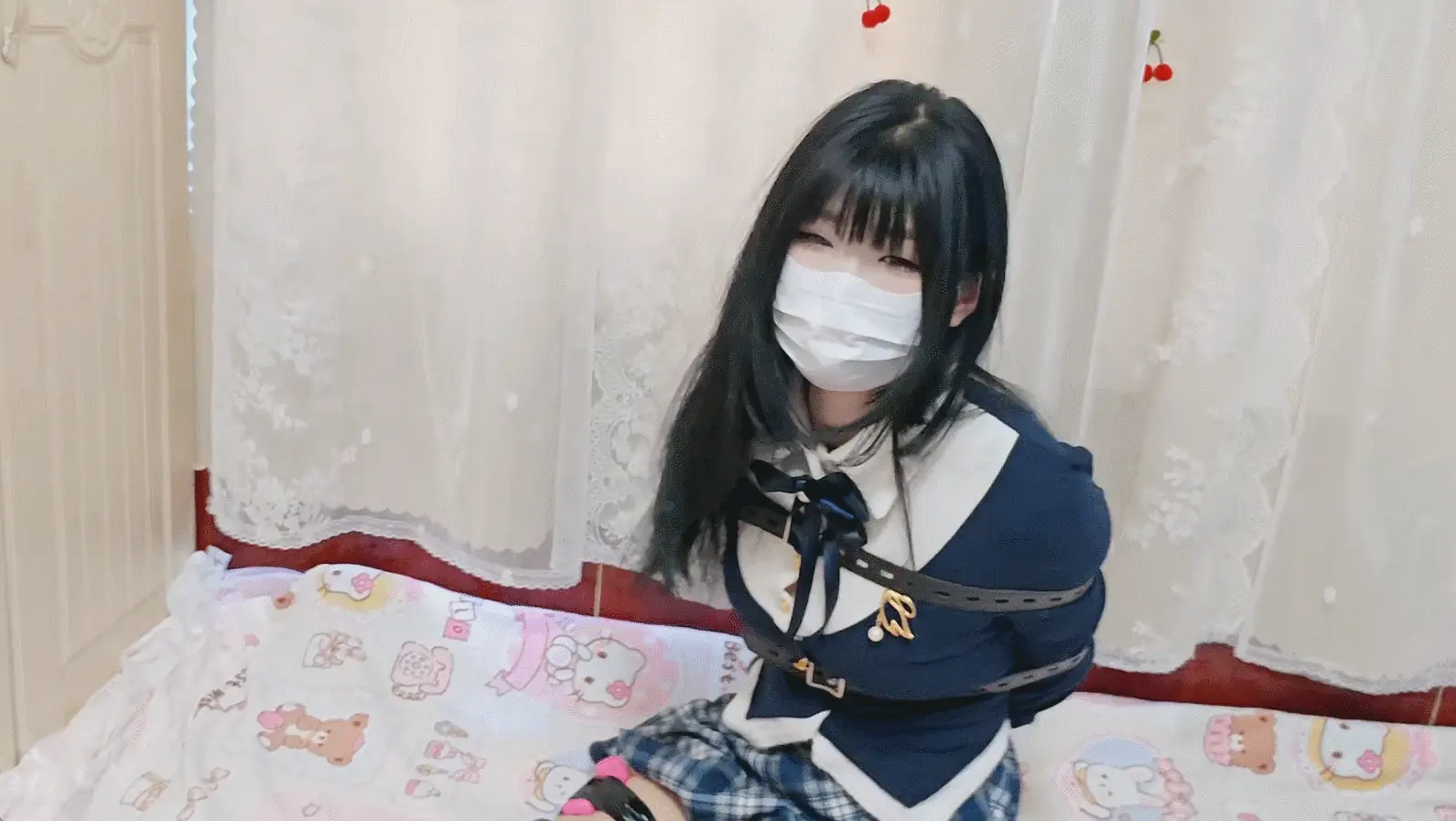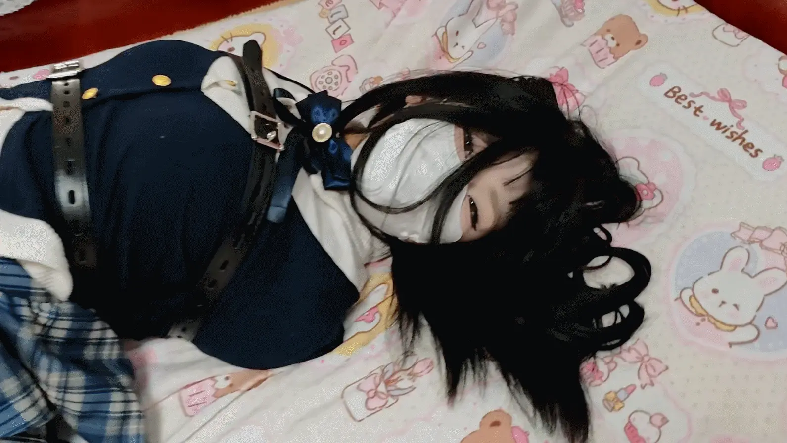 很喜欢的一身蓝色系的小裙子套装,搭配了薄肉色丝袜,袜套和玛丽珍小高跟,这次是用皮带绑的,感觉唰唰的很快就绑的动不了了hh,然后加入了td,后面脱鞋子挠痒之类的内容