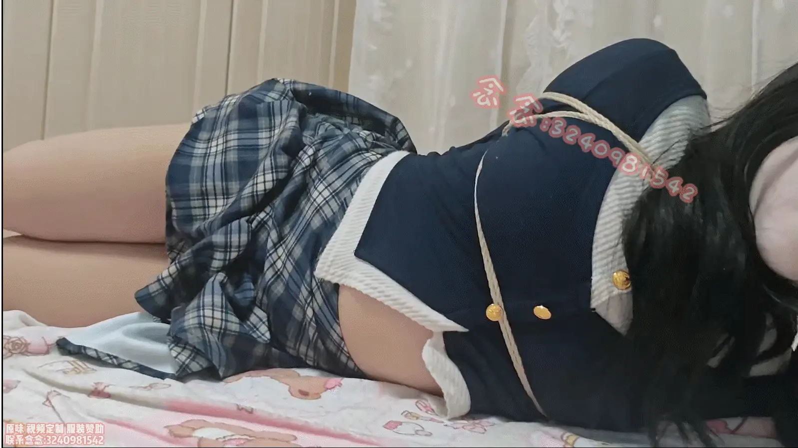 驷马缚,穿的是一套很喜欢的蓝色裙子配了薄的肉色丝袜,驷马连接在脚掌上,嘴巴也用胶带封住,然后后面有一些tk的内容