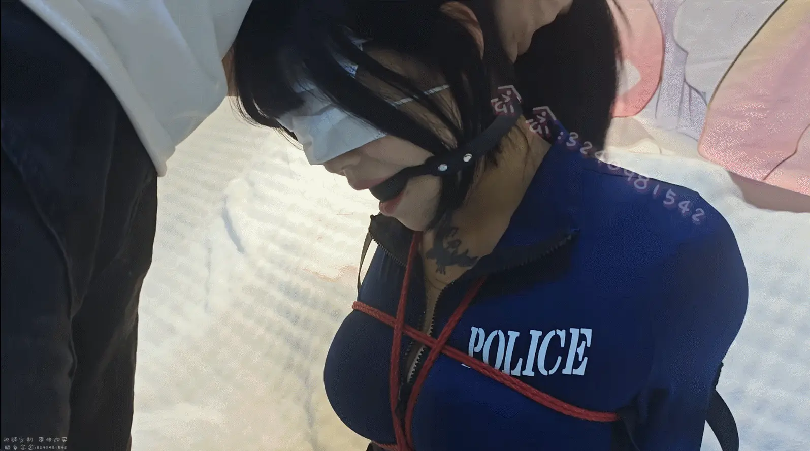 正在搜查的j官念念被从背后捂晕,醒来后发现被捆绑起来,然后劫匪通过tk挠痒惩罚念念,先是隔着驷马,过了一会后撕开丝袜挠裸足,随后戴上口球拿出了按摩棒