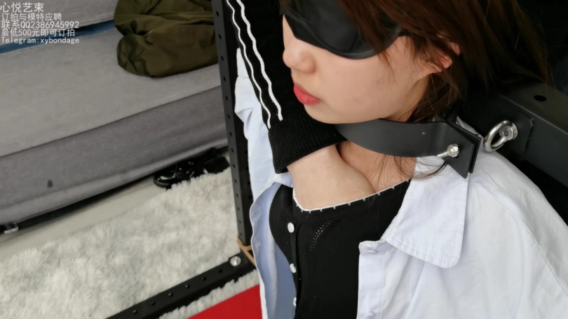 文文这个月被我忽悠来做我的助手了,哼哼,那不得整天整天的被我折磨。这不,专门弄了个拘束架给她罚跪用。脖颈和手腕锁上,脚上在戴着手铐用绳子分开固定死。只能承受我的咸猪手了。