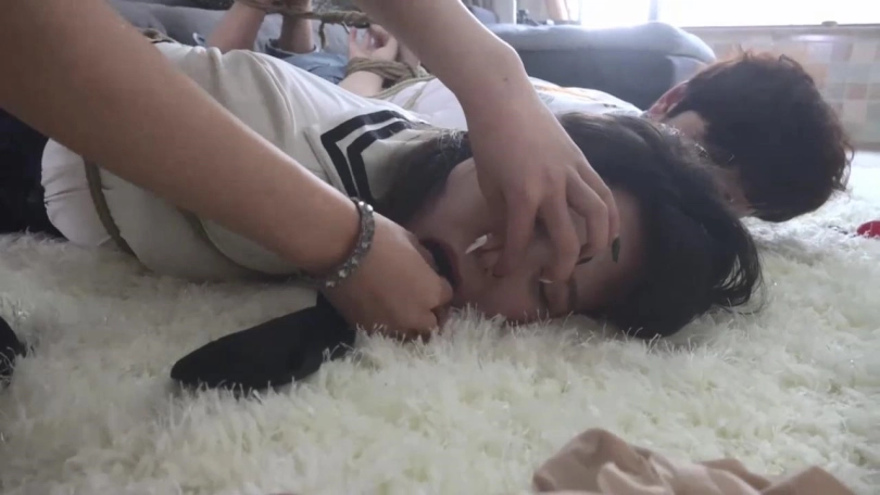 【视频时长】:00:36:16 【文件大小】:995MB 年轻女孩阿妙从昏迷中醒来,惊奇发现自己与男朋友被驷马捆绑在地上,嘴里带着塞口球。 一个身穿黑衣的年轻女子过来,说阿妙与男友偷了公司装机密文件的U盘,黑衣女子解开阿妙二人嘴里口球,可二人推说不知道什么U盘,说是黑衣女子认错人了。 黑衣女匪:还装蒜是吧!给你们点颜色看看!黑衣女匪走向屋内。 阿妙抱怨男友不应该偷公司U盘,男友赶紧让她小声点。这时黑衣女匪回来,把两条肉色连裤丝袜丢到地上,冲阿妙说:这是你这几天穿过脱下来还没洗的丝袜吧? 阿妙和男友不懂对方想干嘛,只见黑衣女匪很快脱掉阿妙和阿妙男友脚上的鞋子,再脱掉二人脚上穿的袜子。 黑衣女匪把阿妙男友脚上穿的臭烘烘的一双黑色锦纶丝袜塞入阿妙口中,把阿妙脚上穿的一双白色锦纶丝袜塞入阿妙男友口中,再分别用两条肉色连裤丝袜勒住情侣二人的嘴巴。 黑衣女匪:既然你们不说,就老老实实吃臭袜子吧!我自己去找! 阿妙与男友互相对视呜呜闷哼抱怨着。 不一会儿,黑衣女匪找到了U盘,原来这U盘放在厕所洗衣机里脏衣服堆低下,黑衣女匪略带嘲讽地说:你们还挺会藏的,让我找这么久,要不是我细心,就被你们给骗过去了!这么捆着不舒服吧,给你们换个舒服点的姿势吧! 黑衣女匪将二人重新捆成背靠背的姿势,坐在客厅沙发前地上。“U盘我就收下了,走之前送你们两口子点礼物。” 黑衣女匪从包里找出一条白色内裤,拽出阿妙口中黑色锦纶丝袜,对阿妙说:这是我穿过的内裤,你看你手绑着,那我只好塞到你嘴里了。于是这条白色内裤被塞入了阿妙的口中。她只能痛苦呜呜闷哼着。黑衣女匪用黑色电工胶布剪下5张,封在阿妙嘴外,再用黑色静电胶带沿她脑后缠绕5圈,再拿黑色自粘绷带缠绕5圈。 黑衣女匪走到阿妙男友身边,脱掉脚上鞋子,脱掉腿上穿的一条肉色连裤丝袜,对阿妙男友说:“帅哥,这是我穿了好几天的袜子,就当做纪念,送给你了。”不顾阿妙男友摇头,黑衣女匪拽出他口中白色锦纶丝袜丢掉,把这条原味肉色连裤丝袜塞入阿妙男友口中,同样用黑色电工胶布、黑色静电胶带、黑色自粘绷带缠绕封嘴。 黑衣女匪给情侣二人拍了几张照片,还羞辱对方,阿妙与男友愤怒地瞪向黑衣女匪,黑衣女匪:“还敢瞪我?!”她用黑色静电胶带与黑色自粘绷带,分别沿情侣二人眼睛外缠绕,封住二人眼睛。 “好好享受吧,拜拜!”黑衣女匪离开了,留下情侣二人扭动身体剧烈挣扎着,一番挣扎后二人终于挣脱捆绑,解除封眼与塞嘴,拽出口中内裤与袜子大口喘气,思考如何对黑衣女匪进行报复。 看点:情侣捆绑(真实情侣出演)、女劫匪、二次捆绑塞嘴、原味丝袜交换塞嘴、胶布绷带多重缠绕封嘴、胶布绷带封眼、挣脱解除塞嘴封堵。 ![]() ![]() ![]() ![]() ![]() ![]() ![]() ![]() ![]() ![]() ![]() ![]() ![]() ![]() ![]() ![]() ![]() ![]() ![]() ![]() ![]() ![]() ![]() ![]() ![]() ![]() ![]() ![]() ![]() ![]()