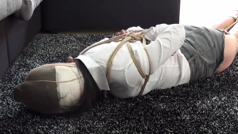 【文件大小】:1459MB 笑笑是某公司女白领,一天下班后回家遭遇一个戴骷髅头面具劫匪劫持,劫匪抢走笑笑财物后,用白色纱布蒙住笑笑的眼睛,将笑笑上身五花大绑。 劫匪随后用几双短丝袜(肉色、黑色)一只只塞入笑笑的口中,还脱下笑笑脚上穿的白色帆布鞋,脱掉笑笑脚上一只白色短棉袜,塞入笑笑口中,用透明胶布封在笑笑嘴外。之后劫匪用红色胶带与黑色胶带沿笑笑嘴外总共缠绕了八圈,又拿白色纱布蒙了几圈。 劫匪让笑笑坐好,拿绳索将其双腿与脚踝并拢捆绑结实,甚至还将笑笑脚面并拢捆绑了几道,最后,劫匪用一条肉色连裤丝袜套在笑笑头上,扬长而去。 笑笑在地上奋力挣扎,最终挣脱束缚,一点点解除套头物与封嘴束缚,拽出口中已经湿润的棉袜与短丝袜,大口喘息着。 看点:棉袜+短丝袜搭配塞嘴;胶布纱布多重缠绕封嘴;连裤丝袜套头;蒙眼挣扎;挣脱解除塞嘴封堵 ![]() ![]() ![]() ![]() ![]() ![]() ![]() ![]() ![]() ![]() ![]() ![]() ![]() ![]() ![]() ![]() ![]() ![]() ![]() ![]() ![]() ![]() ![]()