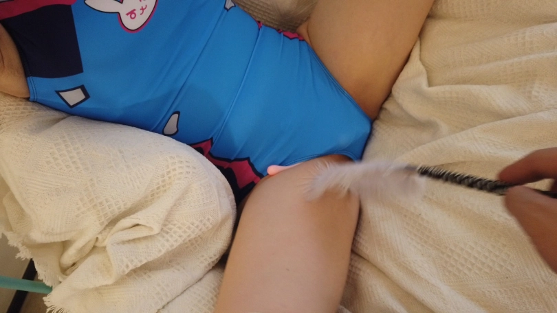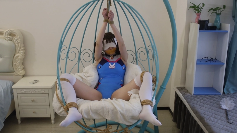 吊起的小手手可是完全阻挡不了我的,M字束缚的双脚绑在两边的吊篮上也是完全只能任我施为。哼哼哼。