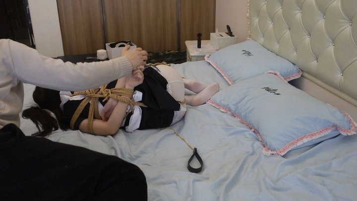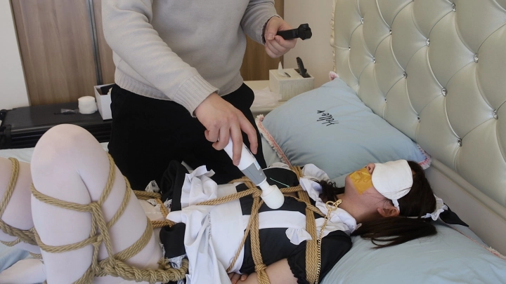 绑法为日式后手+分腿缚,顺便用了些脚镣之类的(没办法,为了方便嘛!)