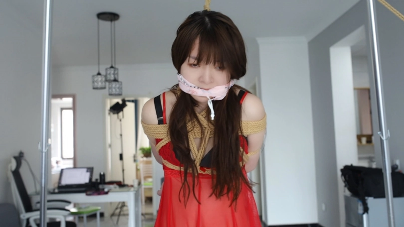 小姐姐穿上红色的情趣内衣,被绑成紧紧的日式五角星,在被吊起只能脚尖踮地勉强保持平衡。却还要和恶魔的小爪爪斗智斗勇。