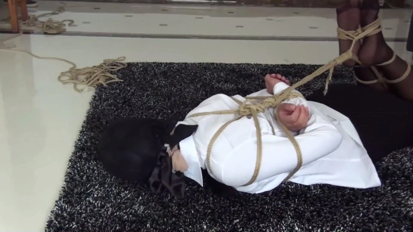 看点:严厉捆绑;塞满嘴后胶布绷带缠绕封眼;呜呜闷哼挣扎;丝袜脚面、裸足脚面特写。