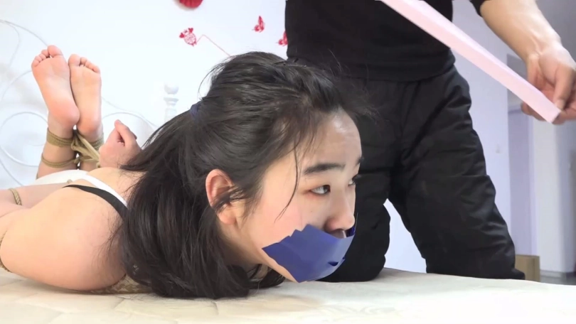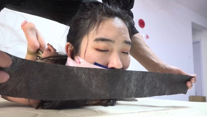 【视频时长】:00:28:39 【文件大小】:917MB 林丹丹在家遭遇坏人(男演员锁哥饰演)入室,劫匪将林丹丹简单捆绑后用她自己穿了几天没洗的一条红色脏内裤塞到她嘴里,而后继续在屋内翻找财物。 林丹丹拼命扭动身体挣扎,挣扎一段时间后总算弄松绳结解开束缚,准备取出口中红色脏内裤呼救,却被找到财物回来的坏人锁哥发现。 生气的锁哥拿许多绳索将林丹丹五花大绑,双腿脚踝并拢捆绑多道,并在此基础上把她驷马放置。 为了惩罚林丹丹想跑,锁哥拽出她口中红色脏内裤丢掉,给她换了一条同样穿了几天没洗的肉色原味连裤丝袜一点点堵嘴。(注:这里一开始塞太快没堵严实,肉色裤袜掉出来了,而后男演锁哥一点点把这条裤袜先从裆部塞,再把两条袜腿一点点捅进林丹丹嘴里,细致展现塞嘴过程。) 堵嘴后锁哥用蓝色电工胶布剪下5张封在林丹丹嘴外,用粉色静电胶带在她嘴外缠绕5圈,再用黑色弹力自粘绷带缠绕5圈将林丹丹嘴封紧。 锁哥恶作剧般给床上驷马挣扎林丹丹拍照,还故意拿给她看进行羞辱,愤怒的林丹丹瞪向锁哥呜呜呜呻吟。 锁哥一看还敢瞪我,干脆把你眼睛封上看你还怎么瞪?!锁哥让林丹丹闭眼,林丹丹抗拒不闭,锁哥一看来硬的,拿着刀子威胁林丹丹不闭眼就把她眼珠子挖出来,林丹丹自然害怕闭眼了,让锁哥用粉色静电胶带在她眼睛外缠绕4圈,再用黑色弹力自粘绷带缠绕4圈。 锁哥收拾完林丹丹带着财物离开了,留下林丹丹呜呜闷哼在黑暗中扭动身体挣扎,无论怎么挣扎都是无济于事,最终她只能减小挣扎幅度低头喘息,等待家人回来给她解开。 看点:塞嘴封嘴过程细致展现,逃脱未遂二次捆堵,五花驷马挣扎,裸足脚面近距离特写。 ![]() ![]() ![]() ![]() ![]() ![]() ![]() ![]() ![]() ![]() ![]() ![]() ![]() ![]() ![]() ![]() ![]() ![]() ![]() ![]() ![]() ![]() ![]() ![]() ![]() ![]() ![]() ![]() ![]() ![]() ![]() ![]() ![]()