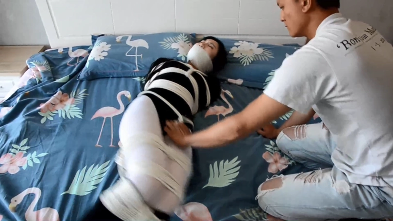 【视频时长】:01:06:33 【文件大小】:2212MB MM刚从大学毕业后在一间公司当OL,跳芭蕾舞是她从小的兴趣。回到家脱鞋后,她摊在沙发上玩电话。 几分钟后,MM家的门铃响起,她开门签收一个快递。原来她买了的芭蕾舞服装到货了。收货后,她拆掉包裹点算,穿上新买的芭蕾服装后,MM站着检查有没有不合身的地方。她来回抚摸自己的胸部和腿部几遍,发觉新的服装很合身,她很满意。 突然,门铃再次响起,原来是刚才的快递员,手上拿着另一盒包裹。MM觉得很奇怪为什么快递员又有一个包裹送来。 快递员突然一手掩着MM的嘴巴,另外一手把MM的双手拉后,再把MM拉回屋后关上门。原来是入室打劫!当MM正想大叫的时候,快递员用裤袜往MM嘴慢慢堵,警告MM不要大叫,直到裤袜全塞进去,而MM只能发出可邻的「呜呜」声。 快递员把MM拉进房间,准备把MM捆绑起来。 为了不让MM吐出口中的裤袜,快递员往MM的嘴贴上了6块银色的胶布,直到MM的整个脸部、嘴巴和下巴变成了银色一片。快递员再用绷带把MM的嘴绕了8圈,MM诱人的「呜呜」已经小了很多。 快递员把MM抱到床上,MM双腿伸直坐着,而快递员坐在MM后面把MM紧紧的抱住,双腿更拑实MM的白丝美腿。快递员忍不住玩弄MM穿了芭蕾装后的矫人身躯,一只不断抚摸MM的胸部、身体、屁股,以及白丝腿,享受全身的丝滑感,另外一只手不时拉动MM的绳裤。MM由「呜呜」声慢慢变成了呻吟声,更差点儿[不可描述]。 此时快递员停了手,解开了MM的绳裤。但是恶梦才刚开始,快递员把[不可描述]同时放进了MM紧身服兜裆。兜裆把两颗[不可描述]紧紧的勒在裆部的位置!快递员把[不可描述]调校到最大的震动,拿走了MM的钱包跟电话然后说:「我要走了小美女,自己慢慢享受啦!」 最后,几个小时后,MM成功挣脱全身上下的捆绑和堵嘴,最后把兜裆的[不可描述]拉出来。MM已经满身大汗,全身无力软摊在床上大口地呼吸。 ![]() ![]() ![]() ![]() ![]() ![]() ![]() ![]() ![]() ![]() ![]() ![]() ![]() ![]() ![]() ![]() ![]() ![]() ![]() ![]() ![]() ![]() ![]() ![]() ![]() ![]() ![]() ![]() ![]() ![]() ![]() ![]() ![]() ![]() ![]() ![]() ![]()