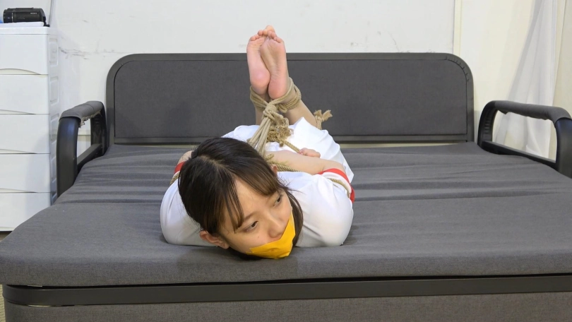 10分钟后,来串门的小狐狸同样不能幸免,与珊珊背对背绑在一起,劫匪还不怀好意地绑住了她们的脚掌脚趾,令她们更加难以挣扎。
