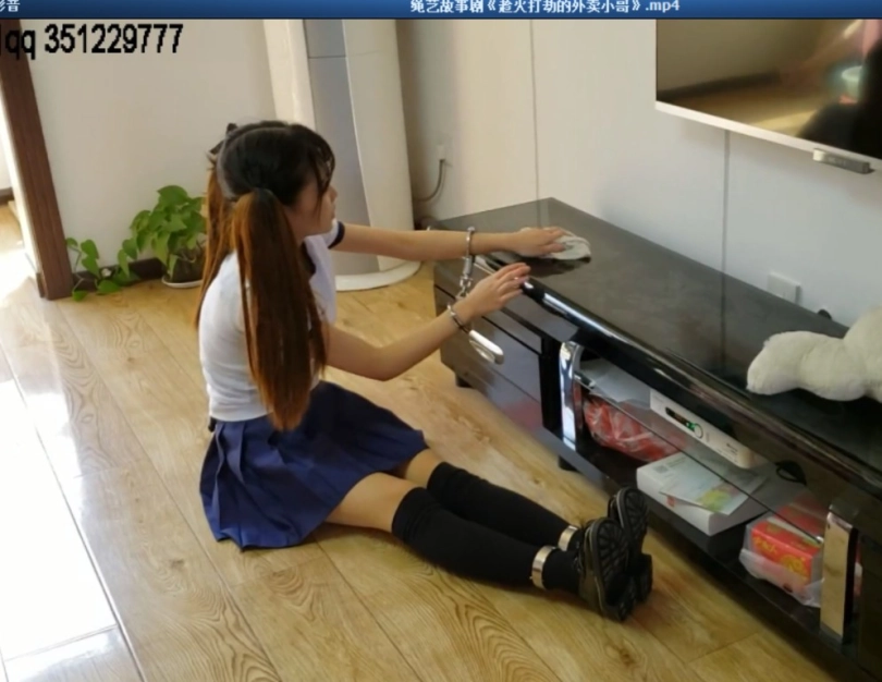 【视频时长】:00:21:53 【文件大小】:451MB 片长22分钟,1080p全高清拍摄。原剧本如下《概述: 女主角是一名保外就医的犯人,在家养病,但是警官临走前忘记给她打开手铐。女主没法做饭,只能点了外卖,之后被外卖小哥趁火打劫。 人物:女主 女警 外卖小哥 服装:女主穿黑色过膝袜,短裙。上衣和鞋子随意。 场景:客厅 卧室 道具:手铐2对,分别铐手和铐脚,假枪 拘束方法:手腕和脚腕分别铐住,因为女主需要扫地和擦桌,所以双手铐在身前。 情节: 女警和女犯进了屋,两人坐在客厅的沙发上。 女警:064号犯人,这次上头同意你在家养病,都是我给你求情的,你要在家老老实实呆着,等你病好了我再给你申请减刑。 女主:警官,多谢您的信任,将来我一定好好改造,争取早日回归社会。 女警:行了,这种套话别说了,这几天就好好养病,不准给我搞事情,要不然我也会跟着倒霉,听明白了吗? 女主:明白了。 女警起身,正要推门离开。(女警从沙发上站起时,手枪不小心掉在了沙发上,两人没有发觉。手枪在之后的情节里有用。) 女主:警官,您就这样走了? 女警:怎么了? 女主:我现在身体还没恢复,什么都干不动,您能不能给我安排个帅哥警官给我做家务? 女警:呸!你想的美!你给我老实点。明天我再来看你。 女警开门离开。 女警走后,女主舒了口气,自言自语了一句:啊,终于自由了! 说着拿起遥控器,打开电视看了起来。(电视全程不用开声音,或者不开电视假装看也行。) 看了一会儿电视(半分钟左右就够了),女主突然想起来,说道:家里很久没人住了,好多灰啊。 站起身刚准备去拿扫帚,被拌了一下,扑倒在地,这才发现自己手脚还被铐着。 女主站起来挣扎了一会儿(手上脚上都要挣扎,挣扎的时间半分钟到1分钟左右),最终只能放弃,不满地嘀咕了一句:难受死了,讨厌! 女主戴着手铐开始打扫起房间,先去拿扫帚扫地,之后拿起抹布擦桌子。(打扫不需要时间很长,加起来五六分钟足够。) 打扫完之后,女主说:肚子好饿啊! 她拿起手机,用手机应用点了外卖。 然后坐到沙发上继续看起电视。 半分钟后,送外卖的小哥按门铃。 女主打开了房门,因为怕手脚上的手铐被看到,所以打开房门后,半个身子躲在门后,对外卖小哥说:把东西放桌上吧。 外卖小哥把外卖放桌上后,没有离开,对女主说:妹子,看在我这么辛苦份上,给我个好评吧! 女主:知道了,我一会儿会给你好评的。 外卖小哥不依不饶:你现在就评吧! 女主:好啦好啦,你相信我,我肯定给你好评! 外卖小哥:不行,你要当面给我好评! 外卖小哥说着,把女主从门后拉出来,女主脚被铐着,站不稳,被拉的踉踉跄跄跳了几步,摔倒在地。 外卖小哥:哎呀!妹子不好意思,没摔伤吧! 他把女主从地上扶起,这才发现她手脚被铐着。 外卖小哥坏笑了一下,关上门,然后摸了摸她手腕上的手铐:嘿嘿!妹子,原来你也喜欢玩这个啊?要不要哥哥陪你玩? 女主:我男朋友在家,你可别乱来啊!我可要喊了! 外卖小哥:你骗谁呢?你外卖只点了一份,家里就你一人吧。 女主:好吧,实话告诉你,其实我是个杀人犯,我可是超凶的哦! 外卖小哥:那你给哥哥凶一个看看啊! 外卖小哥说着横抱起女主,女主在他怀里惊叫挣扎着,还是被外卖小哥抱到了卧室的床上。 外卖小哥在女主腿上不停揉捏着,说道:妹子,哥哥我一直没女朋友,今天你就行行好,从了我吧。 女主在床上挣扎了一会儿,突然一脚把外卖小哥踢开,蹦下床,往客厅里逃。 外卖小哥捂着身上被踢的位置,追出卧室,女主逃到客厅沙发边上,正好看到沙发上有女警忘记带走的手枪,赶忙拿起手枪对准外面小哥。 女主:不许动!再敢动我开枪了! 外卖小哥被枪指着,稍微懵了一会儿,然后举手投降:妹子你别开枪,求求你饶了我吧! 女主:哼!那刚才你会饶我吗? 外卖小哥:妹子,刚才我是开玩笑的,别当真,你放我走吧! 还没等女主说话,这时房门被打开,女警一开门看到这场面,马上厉声叫道:064号犯人,给我放下枪! 女主一看是女警,马上吓得把枪一扔:啊警官,不是你想的那样! 女警:你胆大包天啊!偷了我的抢,还想杀人!果然不应该放你出来! 女主:警官,你听我解释! 女警从地上捡起枪,喝道:跟我走! 之后不容分说地拉起女主往外走去,女主被拽得一蹦一蹦地才勉强跟上。 外卖小哥一脸懵逼地看着这一切....》 ![]() ![]() ![]() ![]() ![]() ![]() ![]() ![]() ![]() ![]() ![]() ![]()