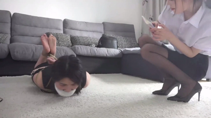 表现不同美女模特在紧缚塞嘴封嘴后被反派拍照加以羞辱,愤怒冲反派瞪眼同时呜呜呜闷哼发泄不满招致反派将她们封眼的过程,共7位模特出演。