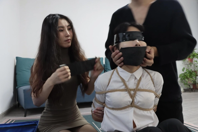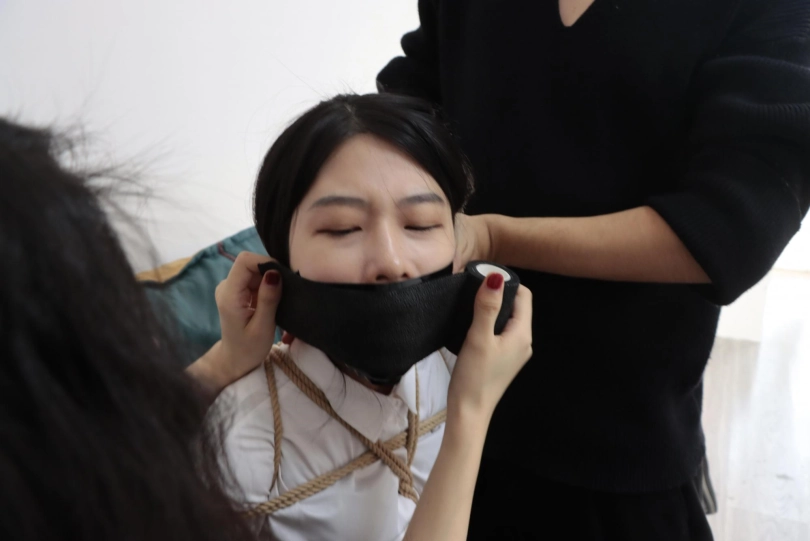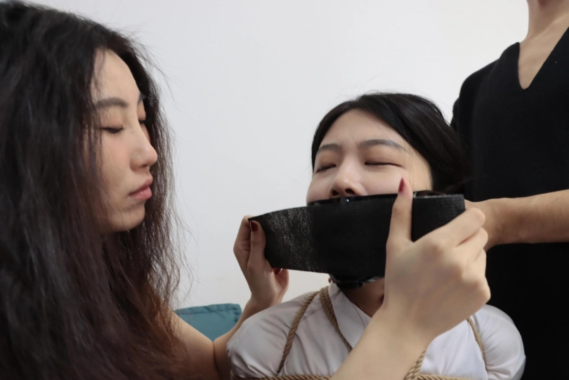 【视频时长】:00:41:18 【文件大小】:1502MB 一栋楼里 一个男人正在打电话(以下简称男):"明白,姐,您在三爷面前多替我说说话,再宽限几天,我肯定把货送过去。您辛苦,您辛苦。" 挂了电话,转身对坐在沙发上的妻子说:"你那边怎么样了?买家有点着急了,再交不了货咱们都得完蛋!" 女人(恩可饰):"最近刚好锁定一个,美女大学生,刚毕业,现在在房产中介干销售,我约了明天来家里聊房子,给。"说着把手机上的照片递给了男人,"怎么样,不错吧?" 男:"各方面条件都不错,行,就她了。"接着说:"人贩麻三,三爷,当年何等威风,现在一个小小的东南亚富商就能让他低三下四,看来这活儿是干不长久了,老婆,咱们干完这一单就金盆洗手吧。开个店,过上安稳日子。" 女:"好,我都听你的~" 女人站了起来,两人搂在了一起 男:"对了,老婆,我今天去储物间看了一下,东西不太够。" 女:"放心,我晚上去买。" 第二天早上 咚咚咚 "来了。" 恩可起身开门。只见穿着商务装高跟鞋的米娅站在了门外 米:"您好,姐,我是来给你介绍介绍房子的。大哥您好。" 男人点头示意。 恩:"快请进.。" 两人坐到了沙发上,米娅向雨晨介绍起了房子,雨晨有一搭没一搭的应着声,向男人眼神示意。男人走向储物间。 过了一会,男人将两大包东西放到了茶几上并坐在米娅的另一边,开始理绳子。米娅一看这些东西觉得不对劲,便问:"姐,这些东西是?" 恩可邪魅一笑,拿出一卷黑色电工胶布,撕下一段。 米娅见状去,刚想起身却被背后的男人反扭双手,绑了起来。 "啊!,你们这是干什么,救…"恩可将一块胶布贴了上去。 "呜呜呜呜"米娅瞪大眼睛望着恩可,似乎不敢相信这是真的。 男人将米娅五花大绑加日式 "老婆,抱住她的腿!"米娅当然激烈挣扎,可是徒劳,很快,大腿,膝盖上下,小腿,脚踝分别被五段绳子困得结结实实,又被加了股绳,再也动弹不得。 "呜呜呜呜"米娅现在只能无助地闷叫。 男:"老婆,我去联系上家,你看着她。" 女:"好" 米娅用恳请的眼神看着恩可,发出呜呜呜的声音,似乎有话想说。 "想说话?" 呜呜呜呜呜呜呜 "我给你找这个机会,但是别耍花招",撕下胶布 米娅:"大姐,我求求你,求求你,放了我吧" 恩可:“放了你? 把你放了我们吃什么呀?” 米娅:“大姐,你们要多少,我保证把钱都给你,把我放了吧!” 恩可:"姑娘,坏规矩的事情我们可不干,行了,既然你是为了说这个 那还是闭嘴吧。" 米娅:"别,大姐,我… 呜呜呜呜"(无奈的表情) 恩可拿出一条白毛巾,不由分说地塞进米娅的嘴里 恩可抬起米娅的下巴说:“其实我们这个和媒婆差不多,只不过手段粗暴了点,放心,我们会给你找个好人家...” 米娅听到这崩溃了,摇着头拼命大叫 恩可:"到时候吃香的喝辣的,可别为了我们,哈哈哈哈哈。" 米娅:"呜呜呜呜(带哭腔)"_ 这时,男人进来了:"上头说了,夜里运走。" 米娅:"呜呜呜呜" 恩可:"时间还早,老公,先把她嘴处理一下。" 米娅,听了,连忙摇头:呜呜呜呜 恩可取出毛巾,拿着一双肉色裤袜要堵住米娅的嘴,米娅摇头:"大哥,大姐,我不会乱叫的,别堵我的嘴……不要!" 男人从背后用双手固定住米娅摇动的头:"哪儿他妈那么多废话,老实点!" 恩可捏着米娅的脸颊将裤袜一点一点塞了进去,可能是觉得不够满,又塞了几双短丝袜(根据模特承受能力定,最好三双),米娅的脸颊鼓了起来。 米娅:呜呜呜呜 恩可又取下四段电工胶布,从人中一直封到下巴。接着又取出静电胶布缠了两圈上去,最后又馋了两圈绷带。恩可抬起米娅的下巴看了看,满意的说:"这样才让人放心啊,美女。老公,你先歇着去吧,这里交给我了"下(堵嘴片段多特写) 恩可脱下了米娅的高跟鞋,米娅摇了摇头开始激烈挣扎 "看来你还有力气啊。"恩可挠了起来 呜呜呜呜,米娅的脚不停扭动(特写) "让我看看你哪里最怕痒,是腰上呢,还是脚上呢?"说着便脱下了米娅脚上的短肉色丝袜挠了起来,又挠了挠米娅的腰。同时还不忘拉扯股绳。 过了一会儿,恩可脱下自己的鞋子,让米娅闻脚 恩可:"怎么样,味道不错把?" 米娅呜呜着想躲掉,哪知恩可将双脚踩在了米娅脸上,米娅动弹不得,只能忍受着这一切,痛不欲生。 天渐渐黑了,男人进来告知要运米娅走,米娅发出惊恐地呜呜声,同时下意识地想逃,奈何很快就被控制住了。 两人用胶带封住米娅的眼睛又缠了两圈绷带,米娅用尽力气想躲可还是徒劳无功。 接着用短丝袜套住米娅的双手再用胶带缠住。 恩可给米娅穿上高跟鞋和短丝袜,用绳子将鞋和脚固定住。 恩可细心地给米娅带上了耳塞,这样米娅的世界就只剩自己的呜呜声了 两人检查了一下各处的绳结,确认无误后装箱(给米娅特写镜头)。 ![]() ![]() ![]() ![]() ![]() ![]() ![]() ![]() ![]() ![]() ![]()
